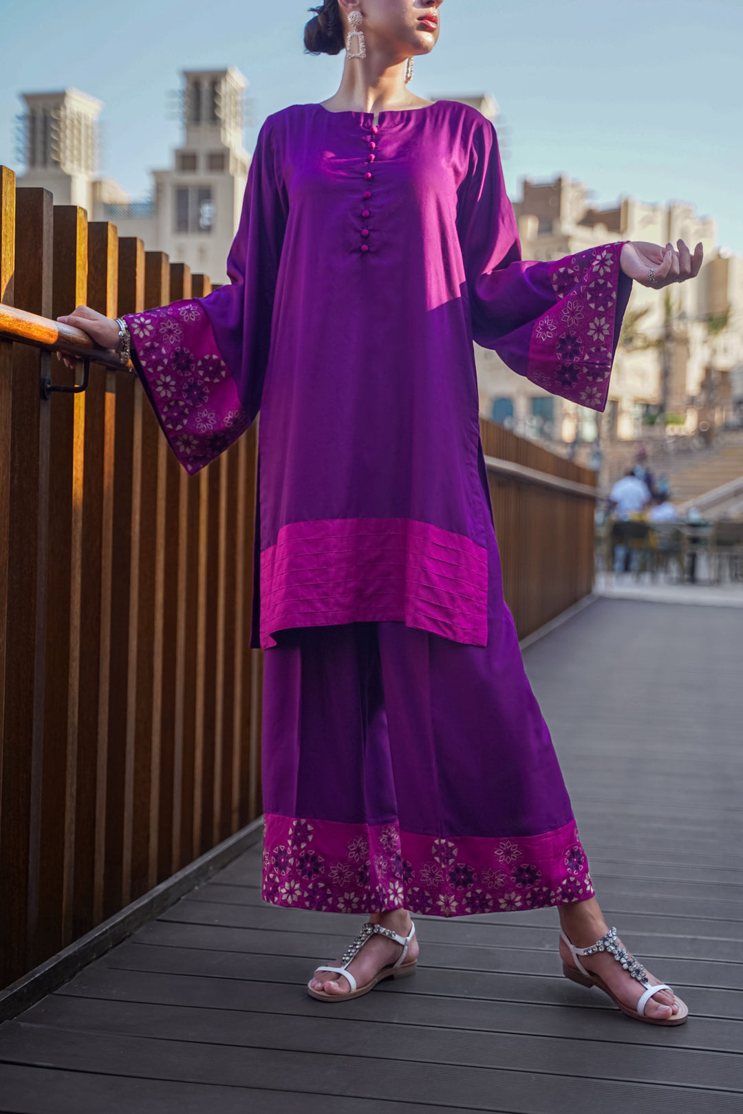 Ombrella - Pallete of purple Tea pink Raw Silk Suit For Women - 3 Piece
