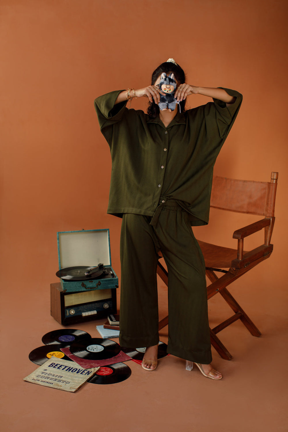 Ombrella - Olive Muse Olive winter jersey Co-Ord Set For Women - 2 Piece