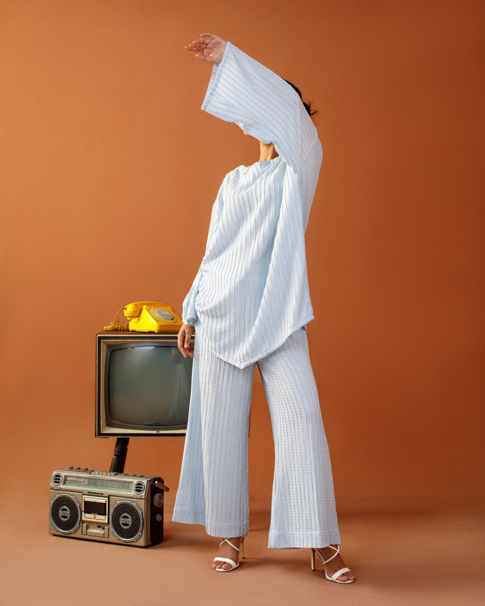 Ombrella - Blue Hour Coord Sky Blue Ribbed knit Co-Ord Set For Women - 2 Piece