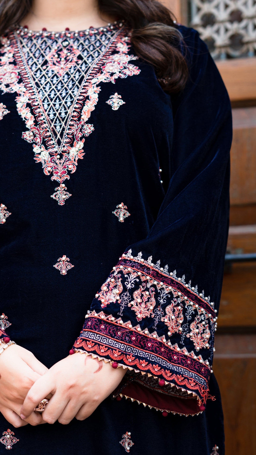Omal by Komal - Armina - Navy Blue - Velvet & Maysuri - 3 Piece