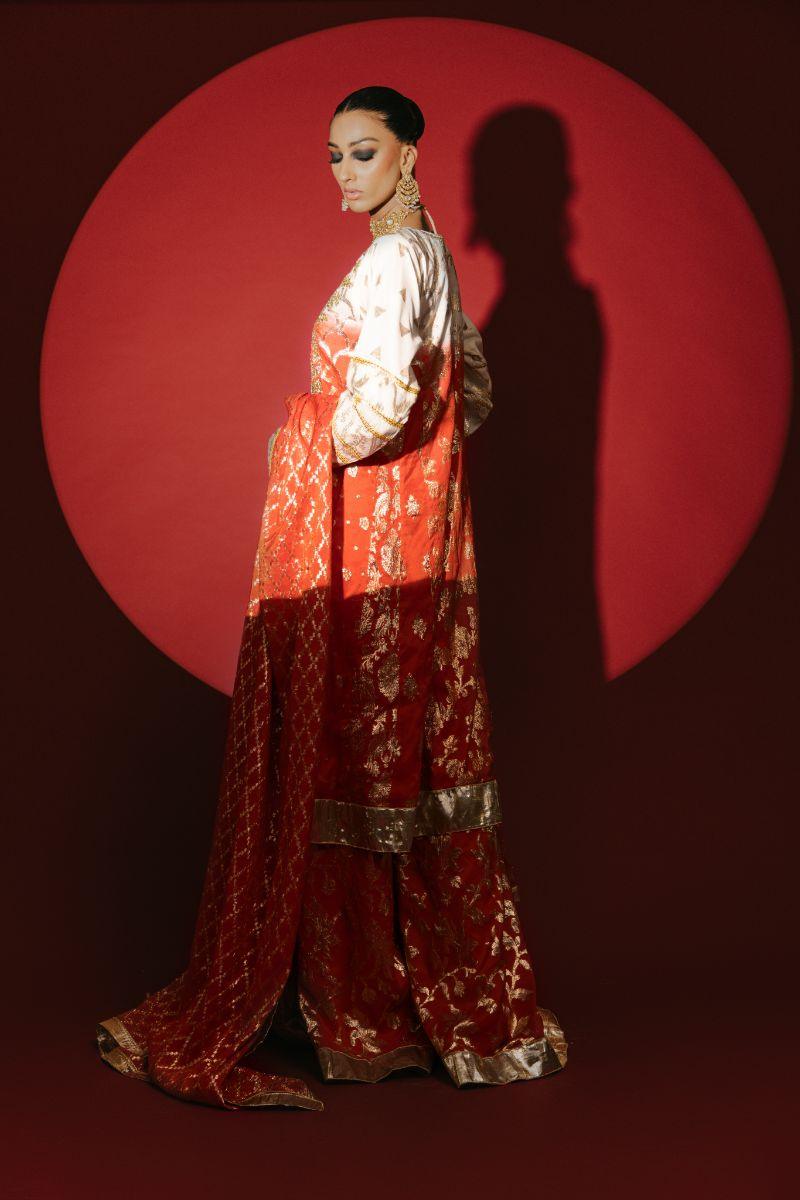 Pinktree - Neelum Munir Outfit - Orange & Hot Pink - Silk - 3 Piece