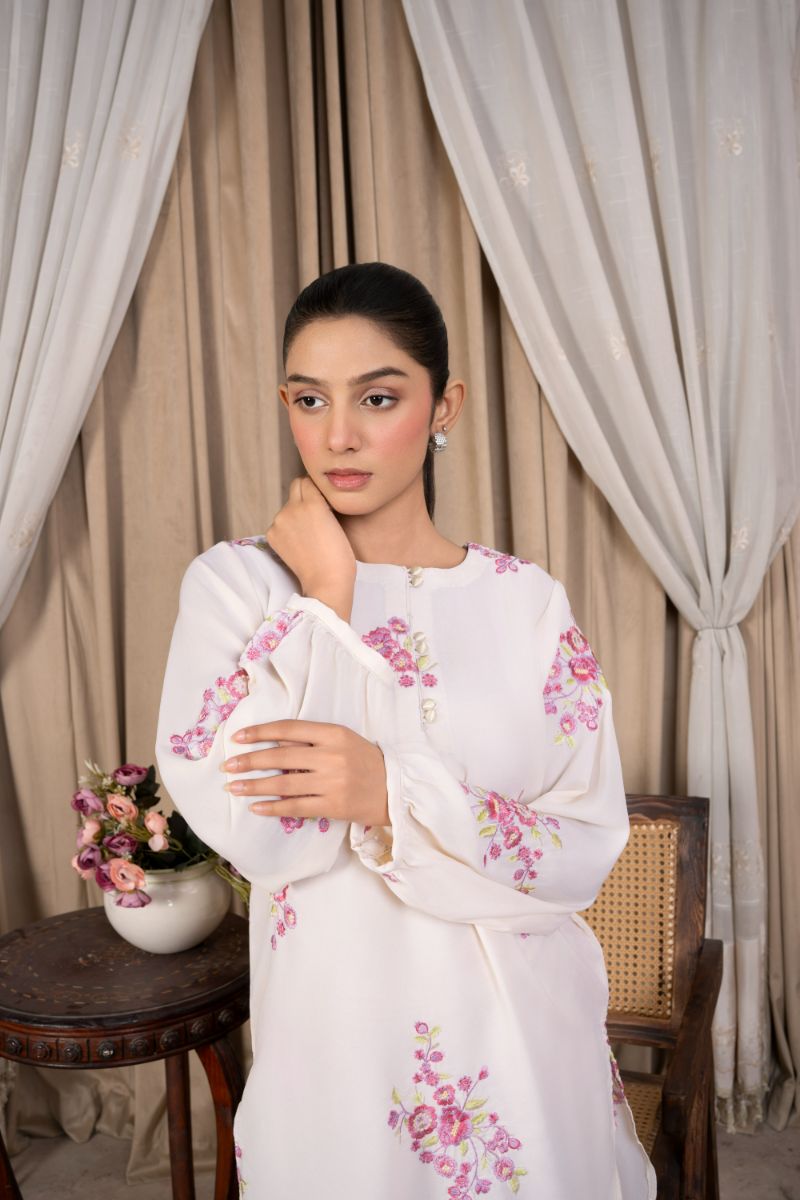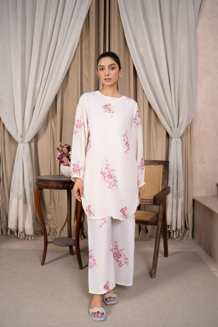 The fusion of traditional techniques with a modern sensibility produces an effortlessly elegant silhouette. Presenting an embroidered co-ord that boasts a luxuriously soft touch, meticulously designed to elevate your style and ensure you enjoy every moment while wearing it.