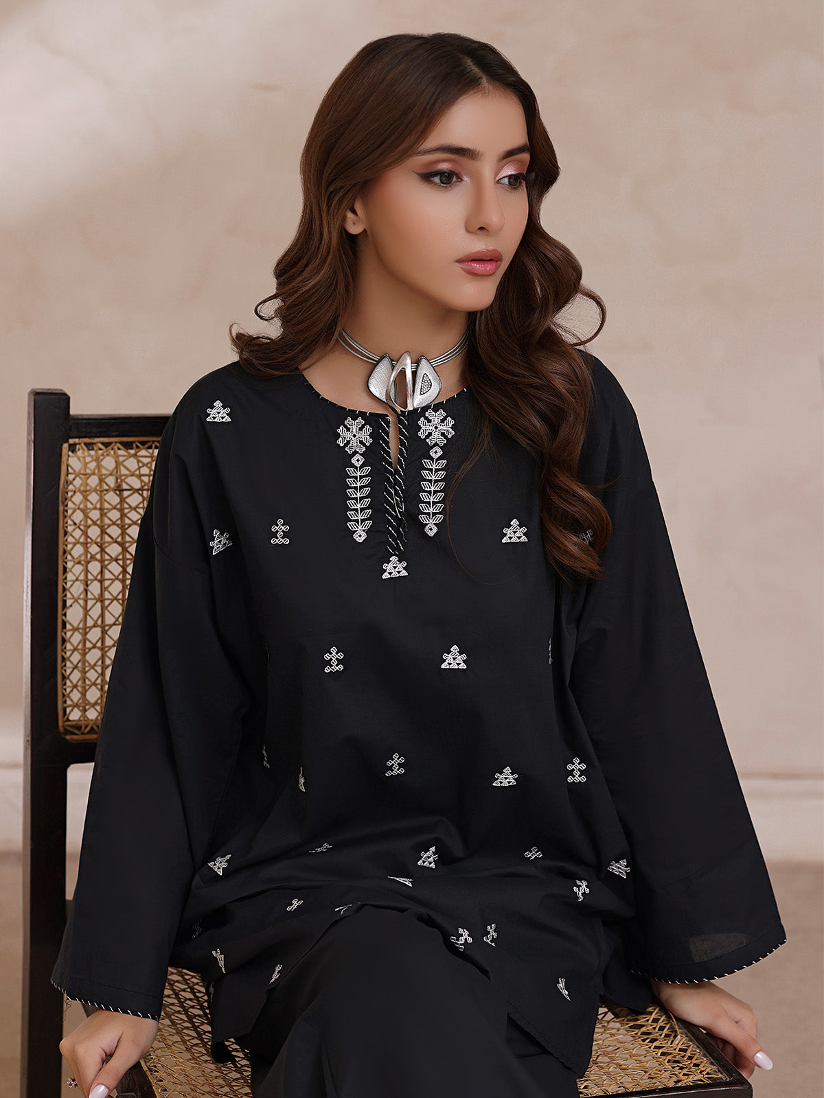 Oaks - Embroidered Cambric Suit For Women - Black - 2 Piece