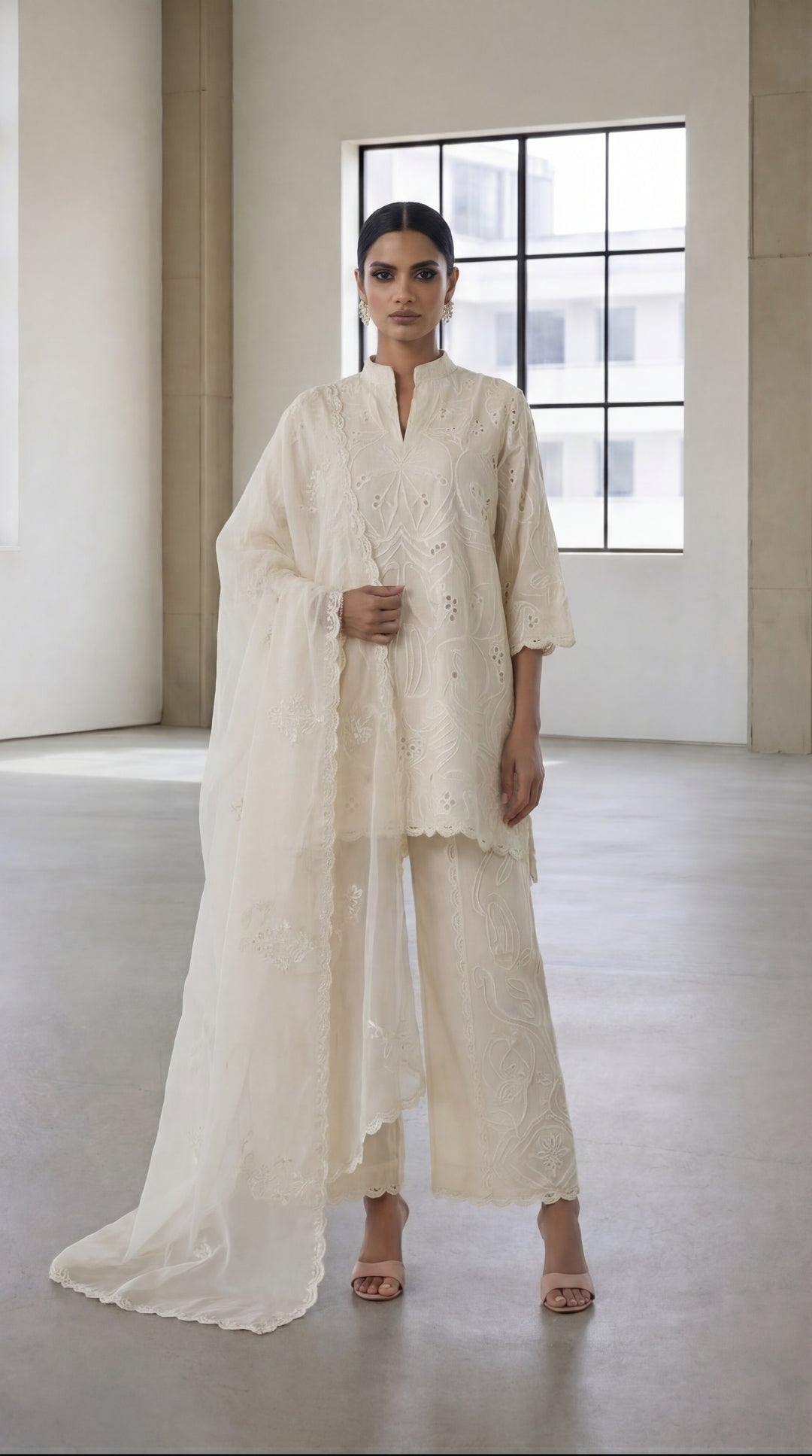 Reema Ahsan - Ayra Khadi Silk Suit For Women - Ivory - 3 Piece