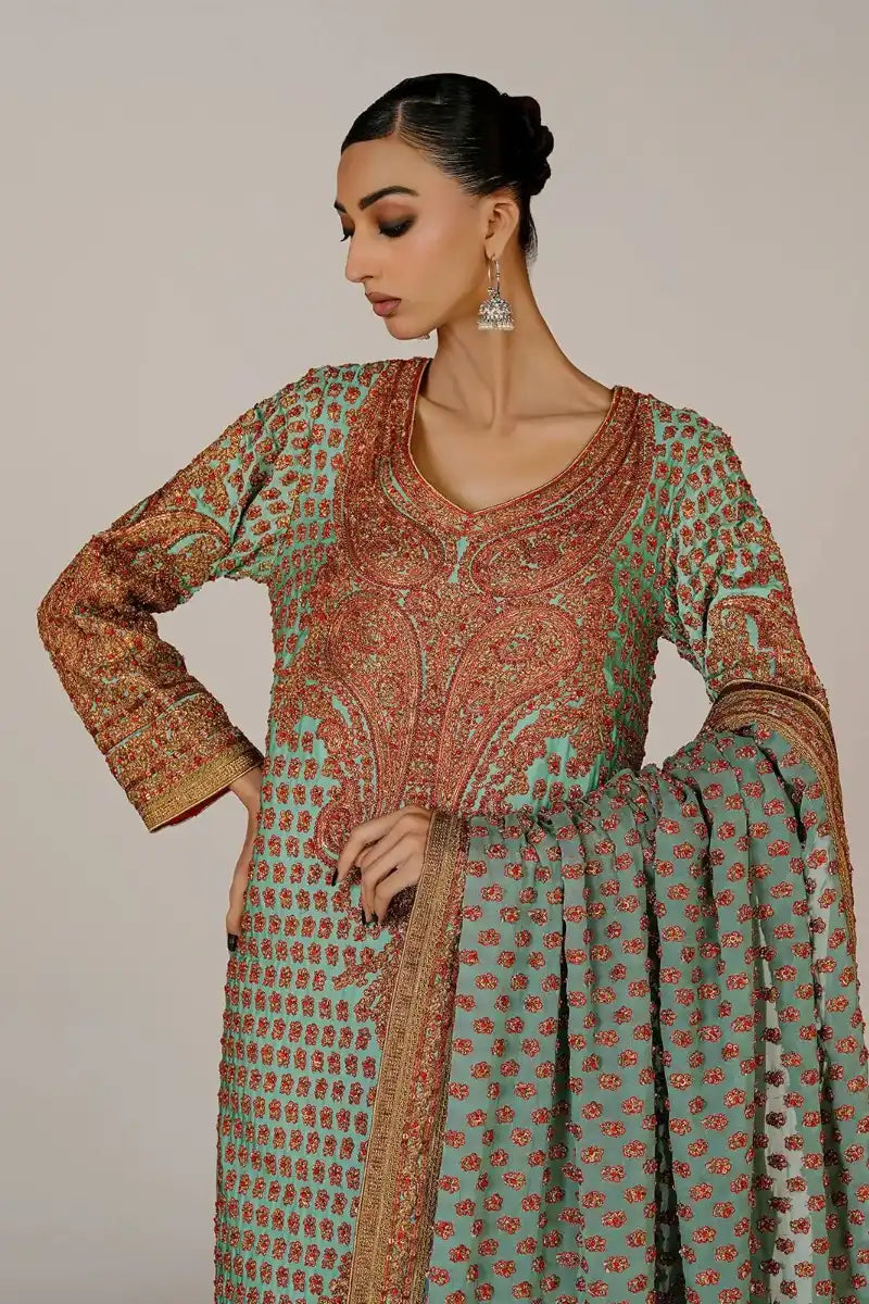Rizwan Beyg - Marori Bridal Aqua Shirt & Dupatta