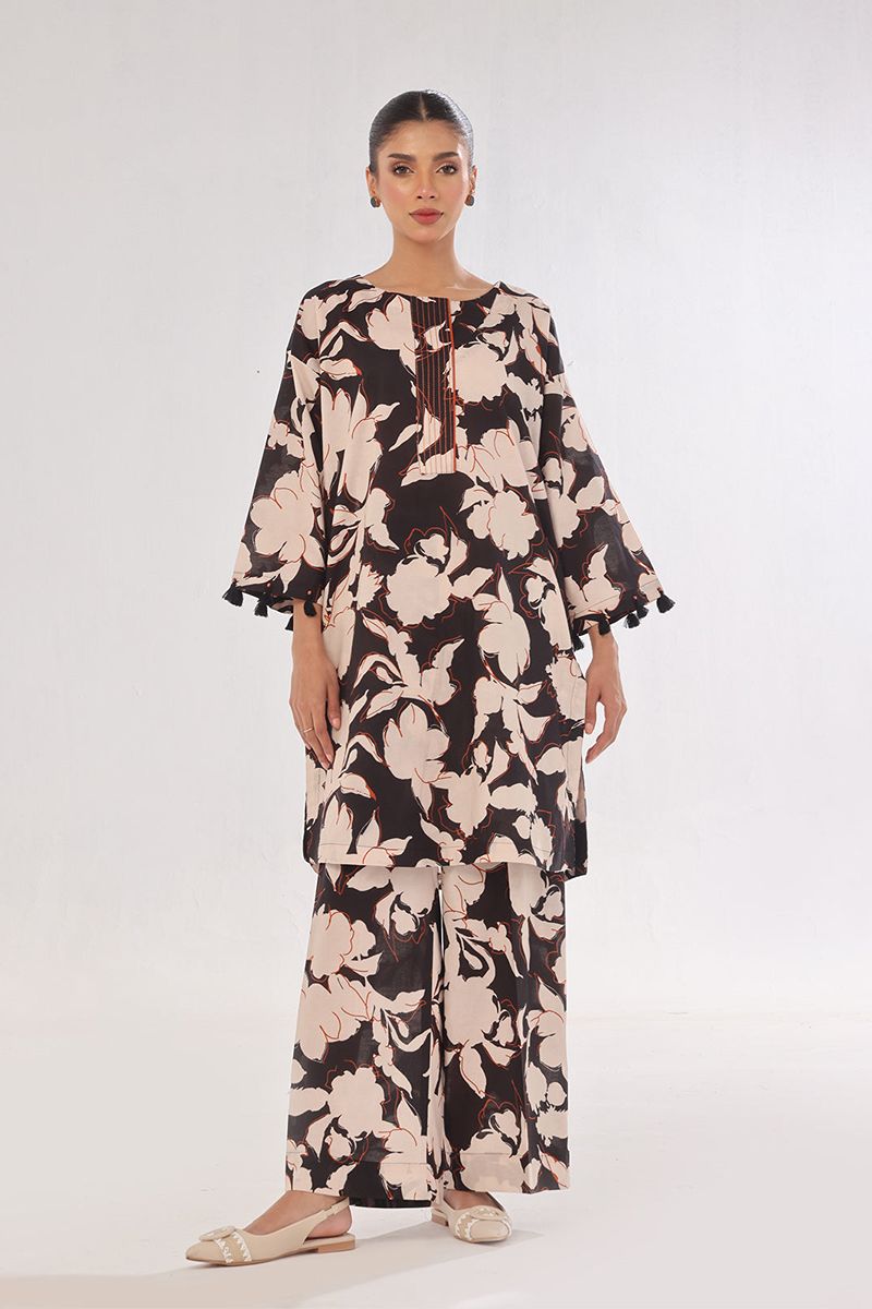 Oaks - Printed Pret & Unstitched Shirt Trouser Swiss Lawn Black - 2 Piece