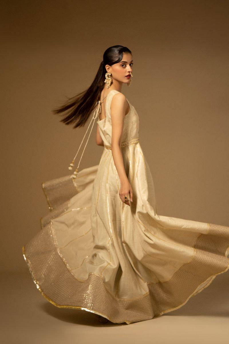 Fozia Khalid - Ivory Sequin - Silk - Pishwas - 2 Piece