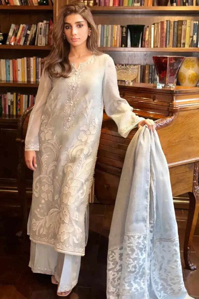 Maheen Trends - ASHEN AURA - Steel Grey - Karandi Organza - 3 Piece