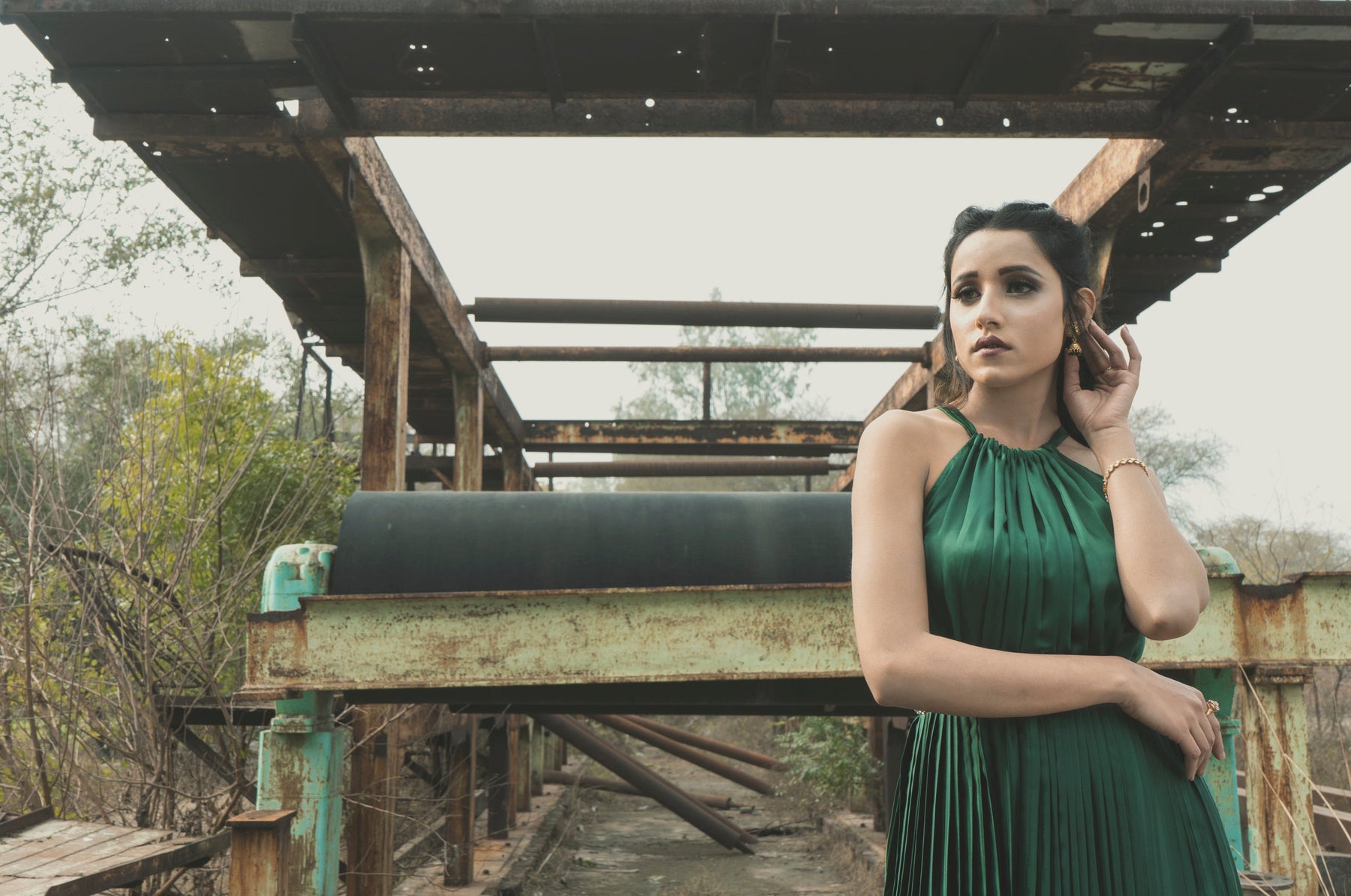 Syah - Halterneck Pleated Dress - Silk - Emerald Green - 1 Piece