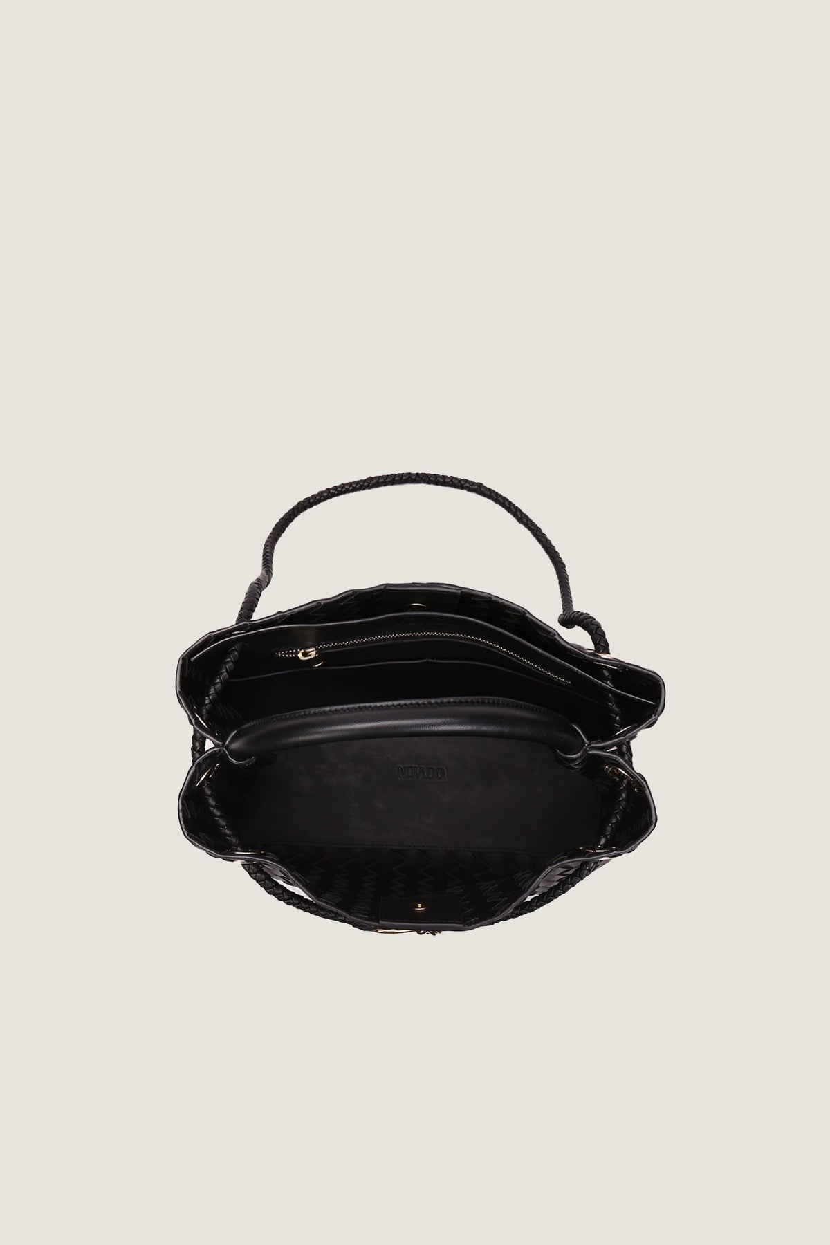 The Medium Andiamo bag, crafted from full-grain sheep magazine leather in timeless black, offers elegance and functionality. With a spacious, compartmented interior featuring one zippered pocket and two open pockets, this bag ensures organized storage for all essentials. The sliding cross-body strap adds versatility, making it perfect for both casual and formal occasions.