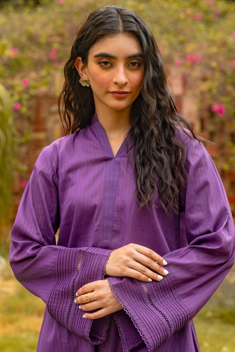 Oaks - Embroidered Pret & Unstitched Suit Dyed Slub Cambric Tea Pink - 3 Piece