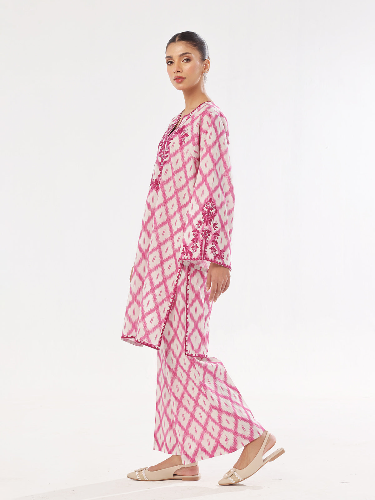 Oaks - Embroidered Pret & Unstitched Shirt Trouser Lawn Magenta - 2 Piece