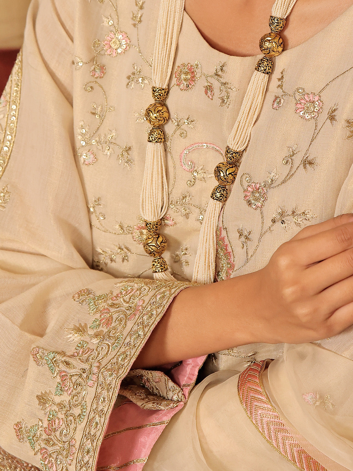 Oaks - Embroidered Suit Pret Masoori Beige  - 3 Piece