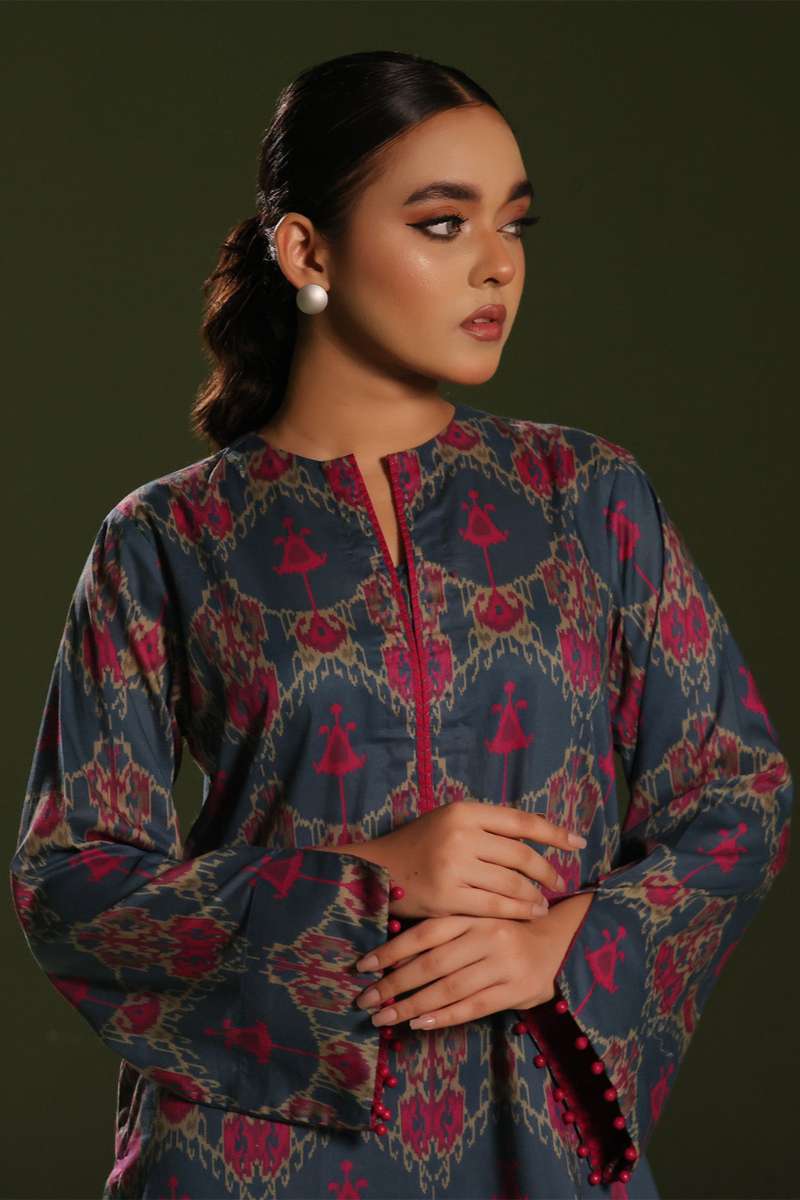 Oaks - Printed Pret Shirt Trouser Cambric Blue/Pink  - 2 Piece