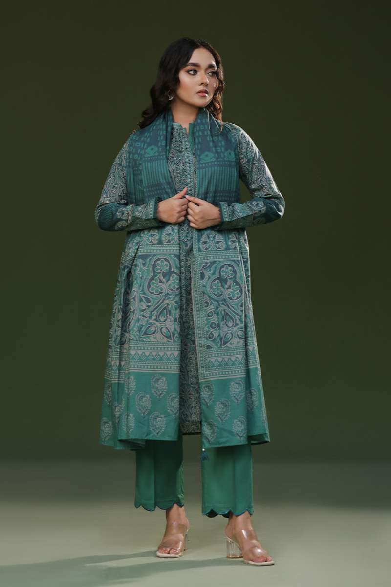 Oaks - Printed Pret Suit Cambric Green - 3 Piece
