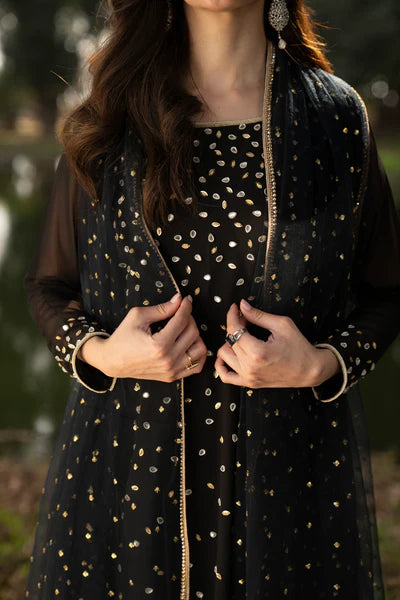 Natasha Kamal - Gorgette Chiffon Alba Suit For Women - Black - 3 Piece