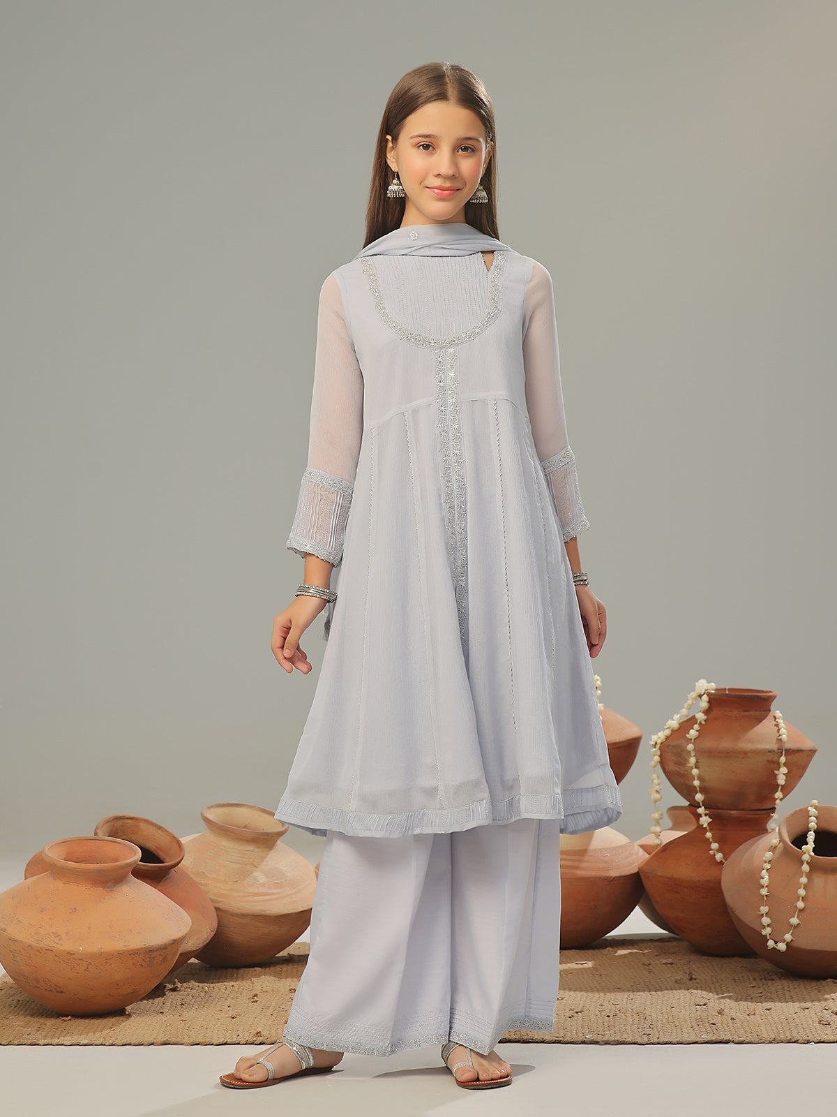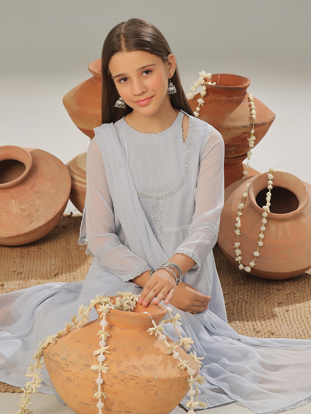Oaks - Organza Embroidered Pret Suit For Women - Sky Blue - 3 Piece