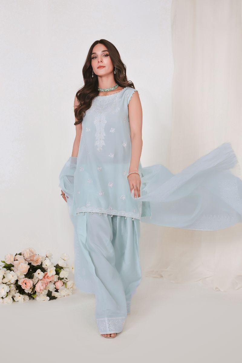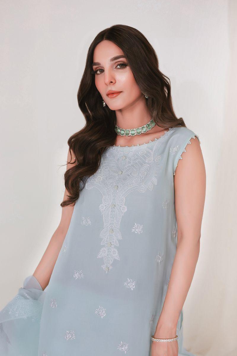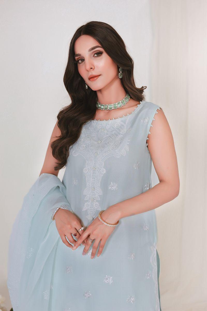 Reema Ahsan - JIYA - Korean raw silk - Ice blue - 3 Piece