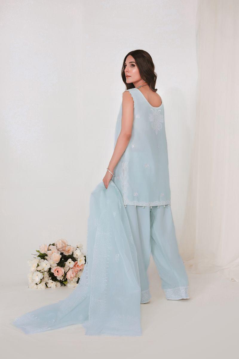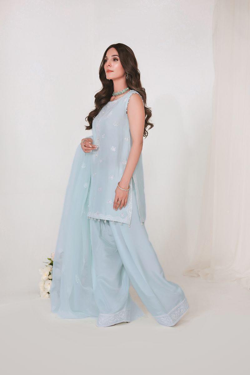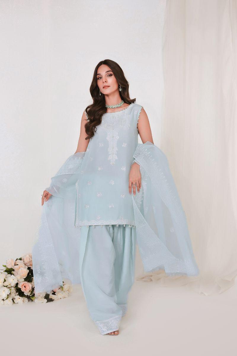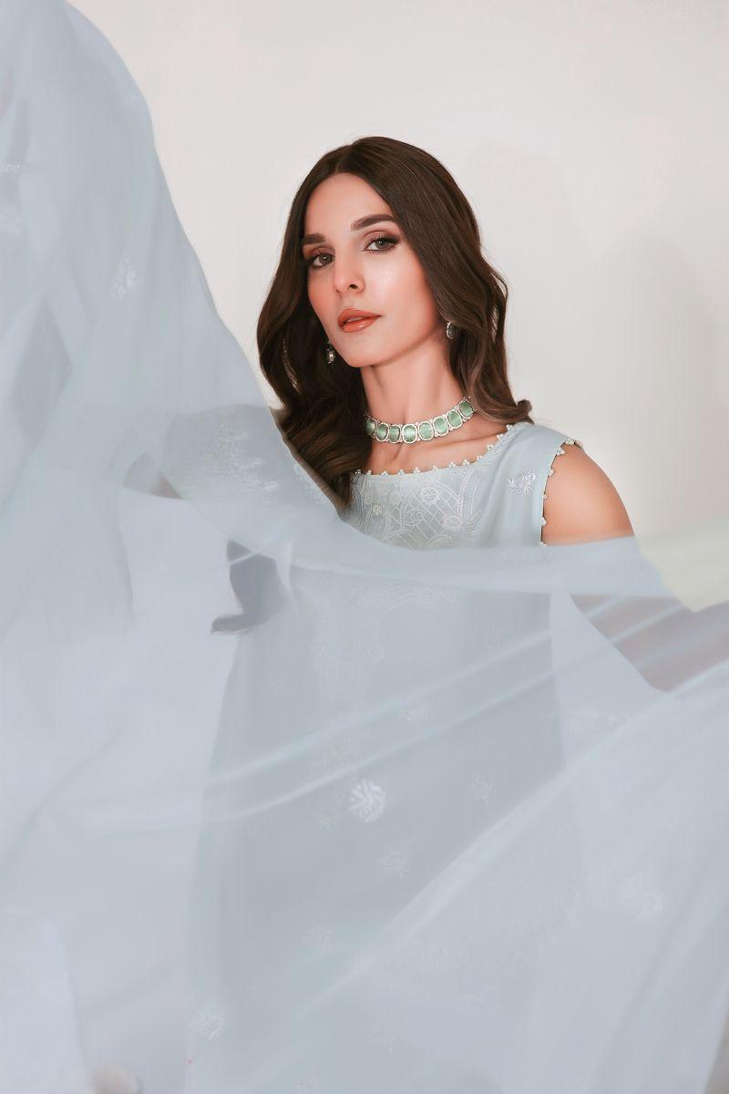 Reema Ahsan - JIYA - Korean raw silk - Ice blue - 3 Piece