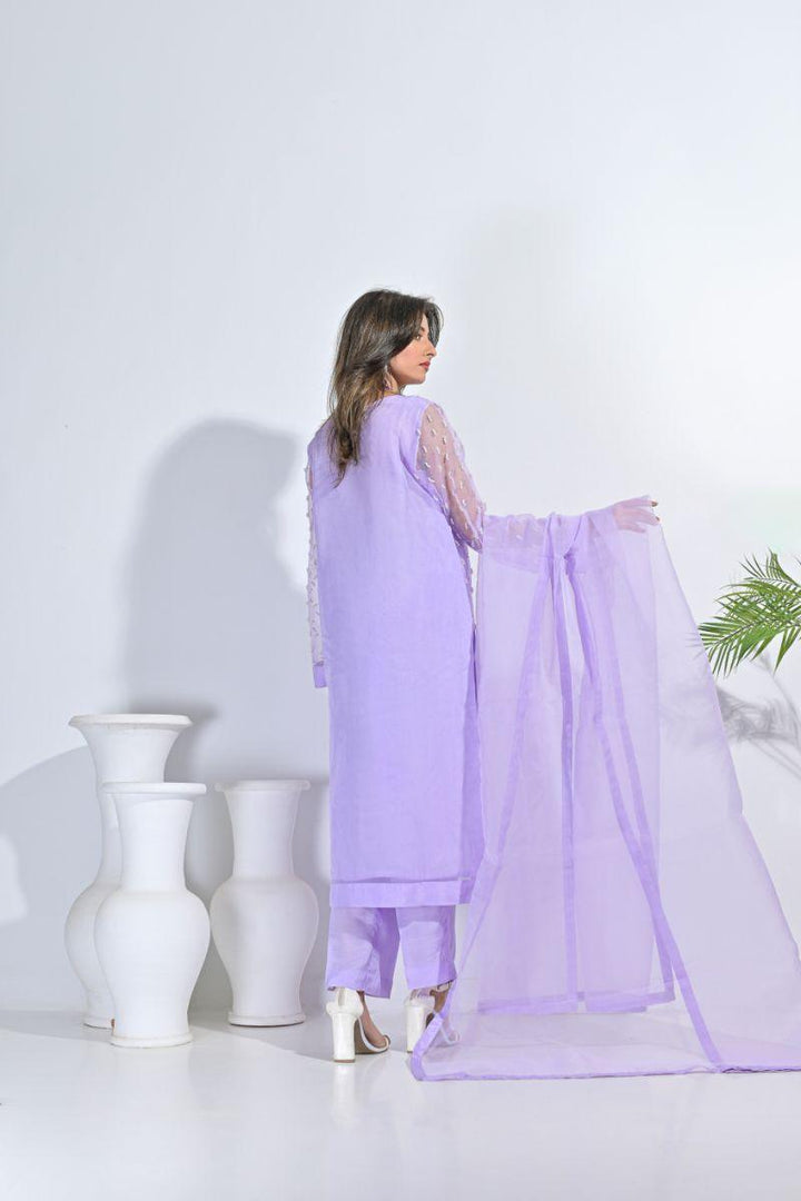 The pure Organza shirt adorned with Perals work . Paired with a Matching dupatta, this ensemble creates an elegant, dreamy look, perfect for special occasions. Shirt febric:-Pure Organza Pant Febric:- raw silk Dupatta Febric :- Pure Organza