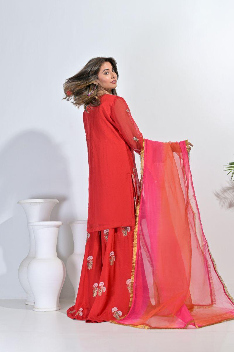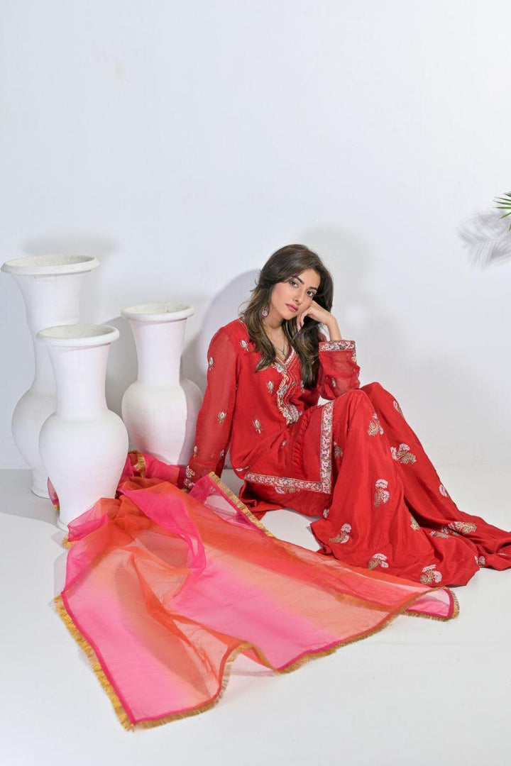Rubys Couture - Muntaha - Red - Lehnga - Khadi, Silk & Organza - 3 Piece