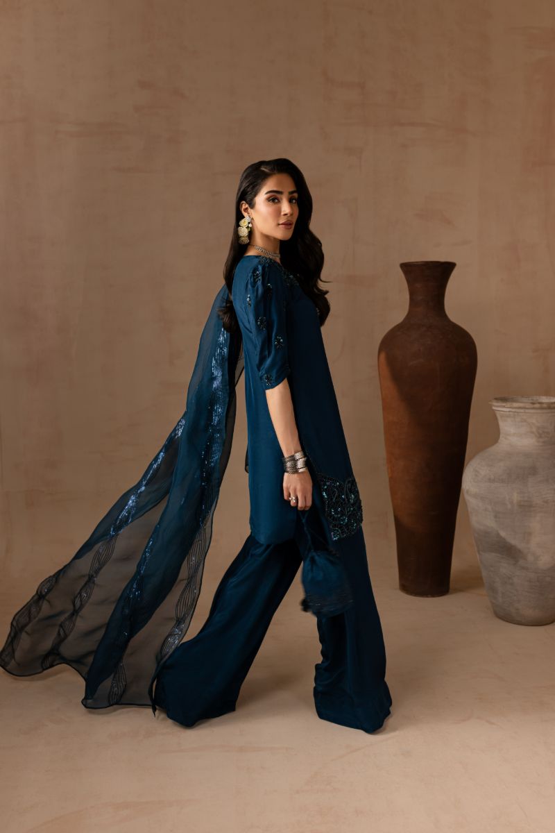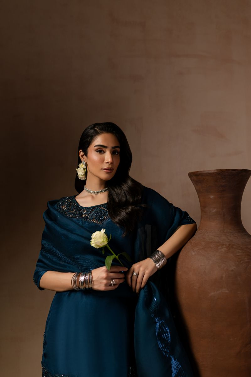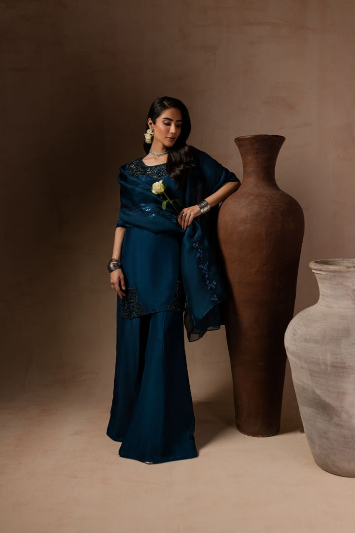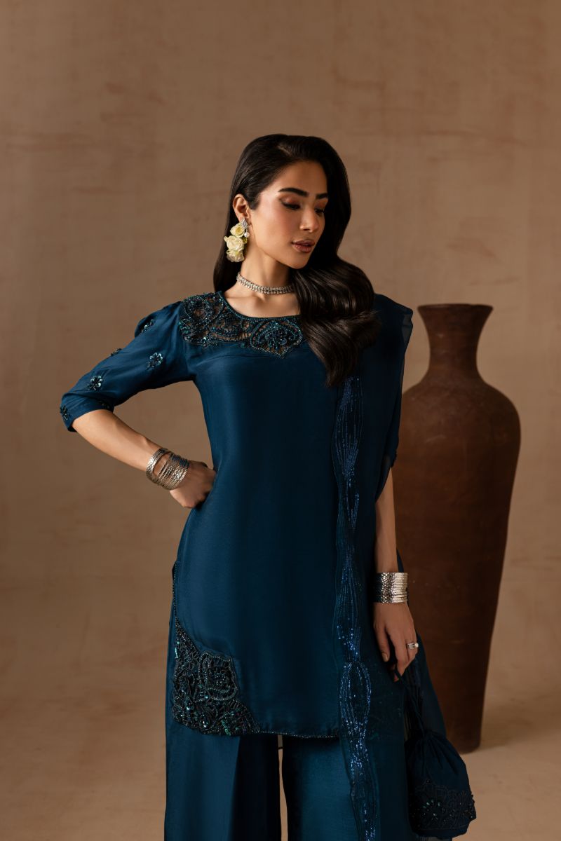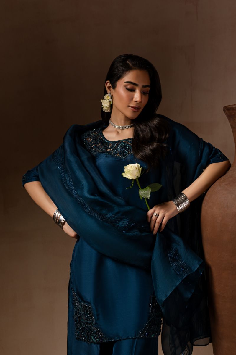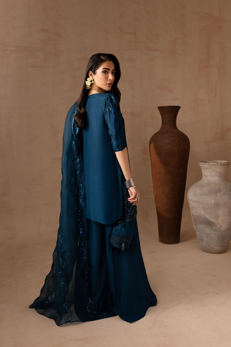Maria Osama Khan - Royal Sapphire  - TELL - RAWSILK & Organza - 3 Piece