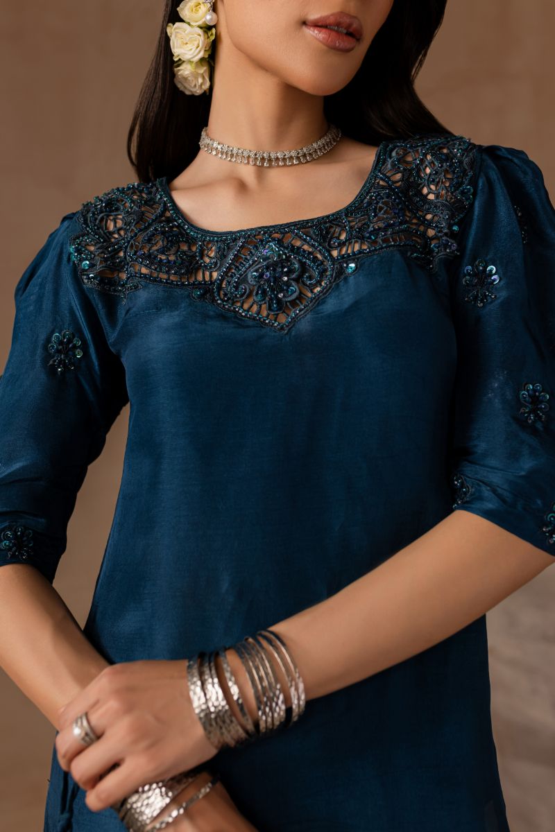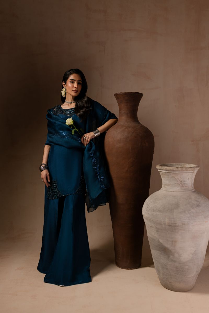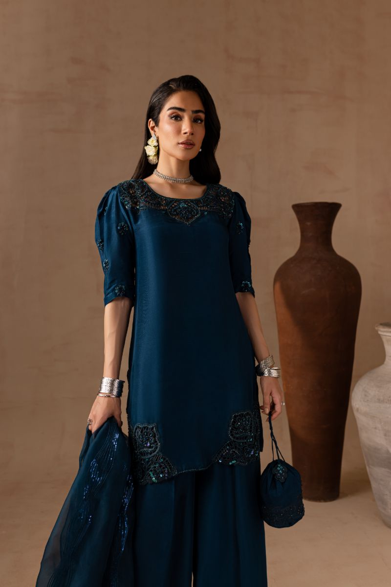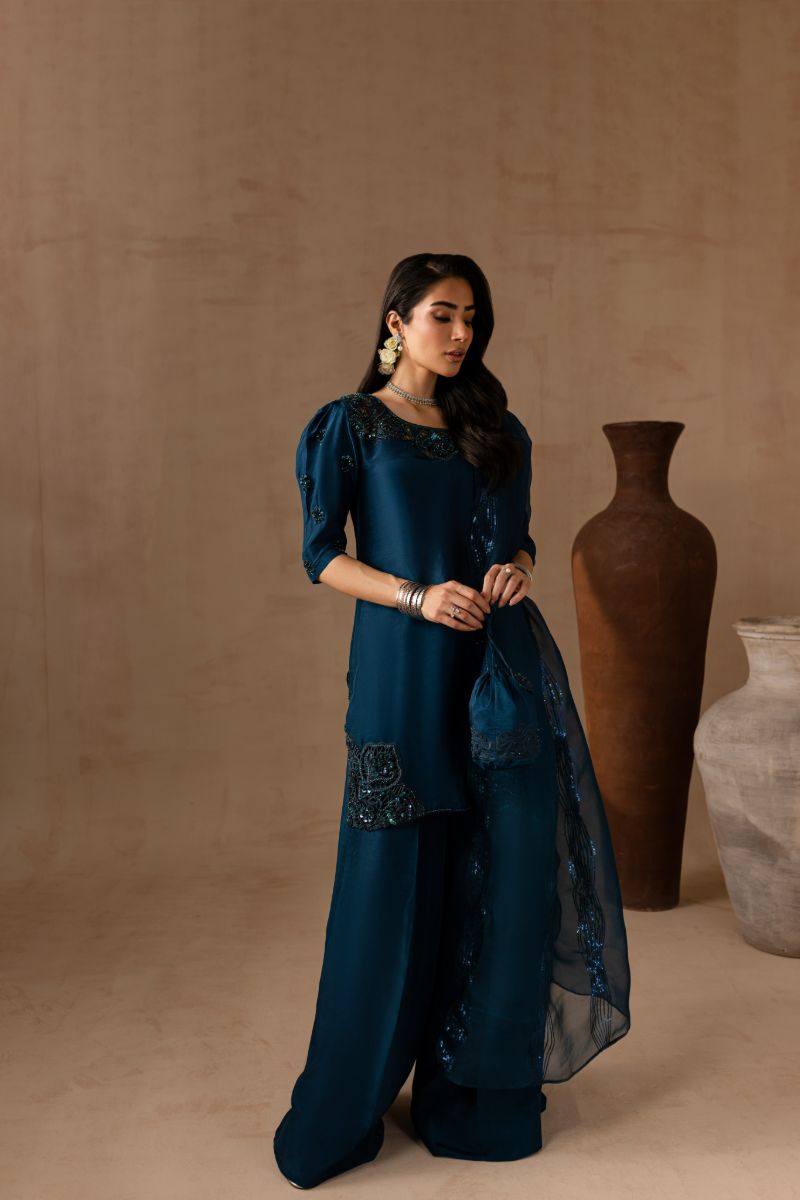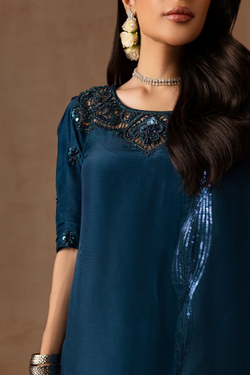 Maria Osama Khan - Royal Sapphire  - TELL - RAWSILK & Organza - 3 Piece