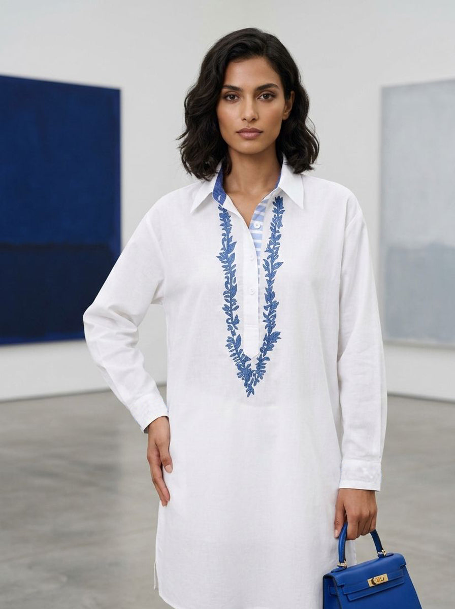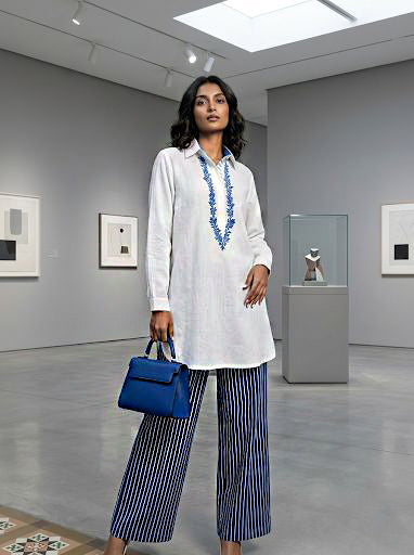 Gulabo - Azure Ease Pure Egyption Cotton Lawn & Bosky Set For Women - White Navy - 2 Piece