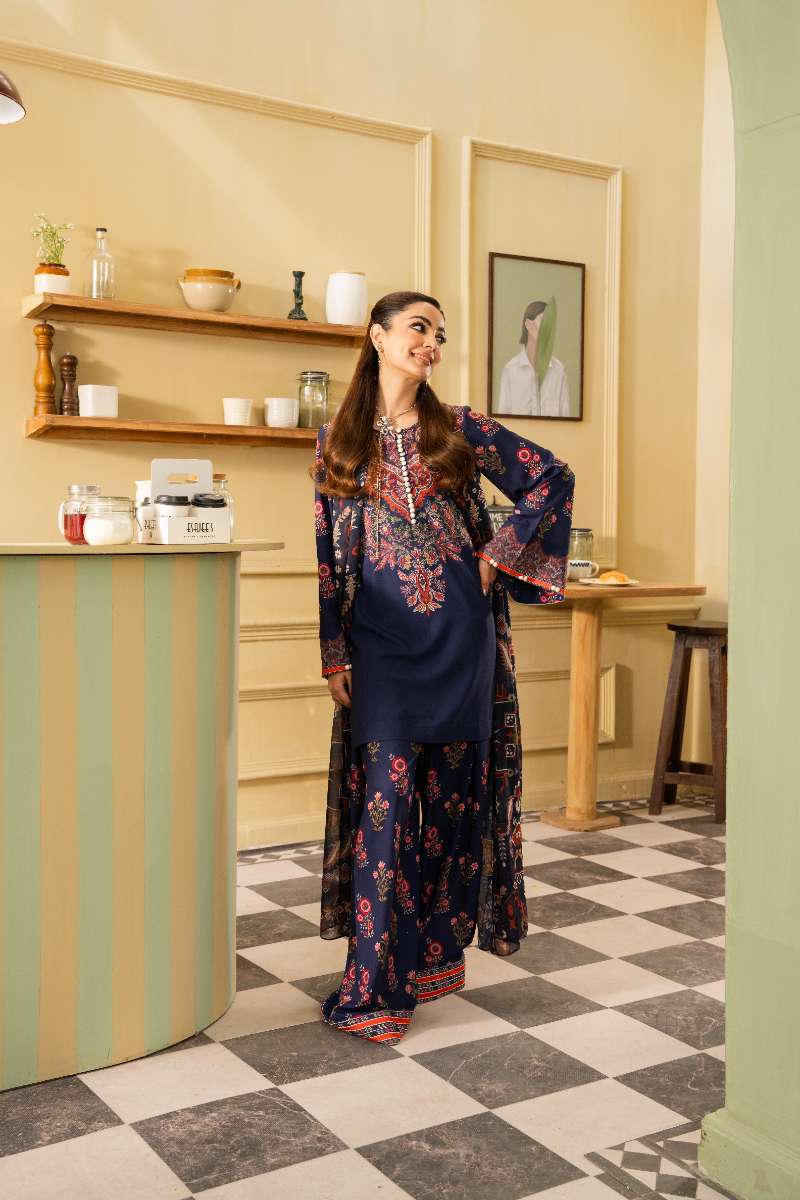 Maria Osama Khan - Georgette & Tissue Silk Lorien Suit For Women - navy blue - 3 Piece