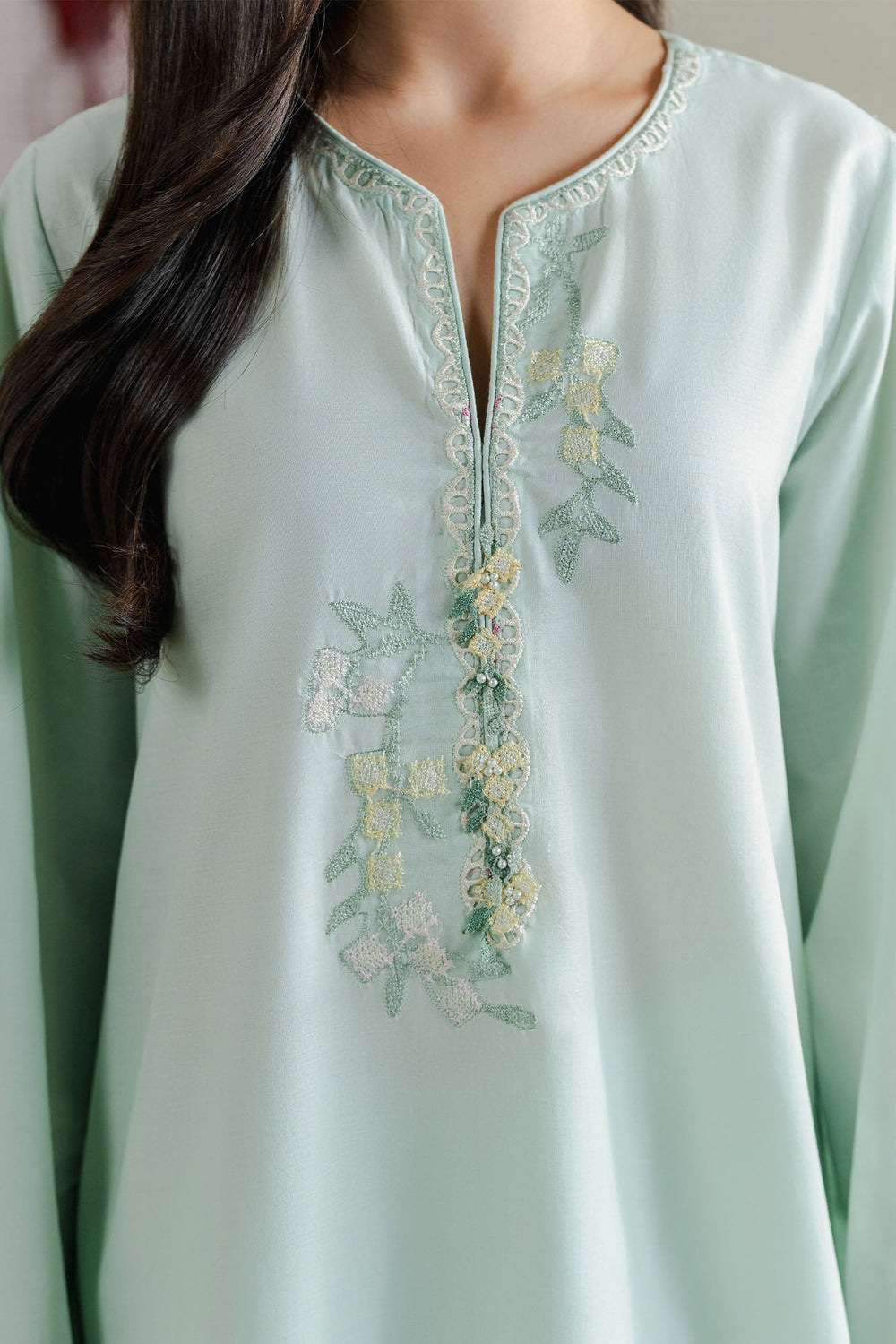 Cross Stitch - Mint Breeze Cambric Suit For Women - Green - 2 Piece