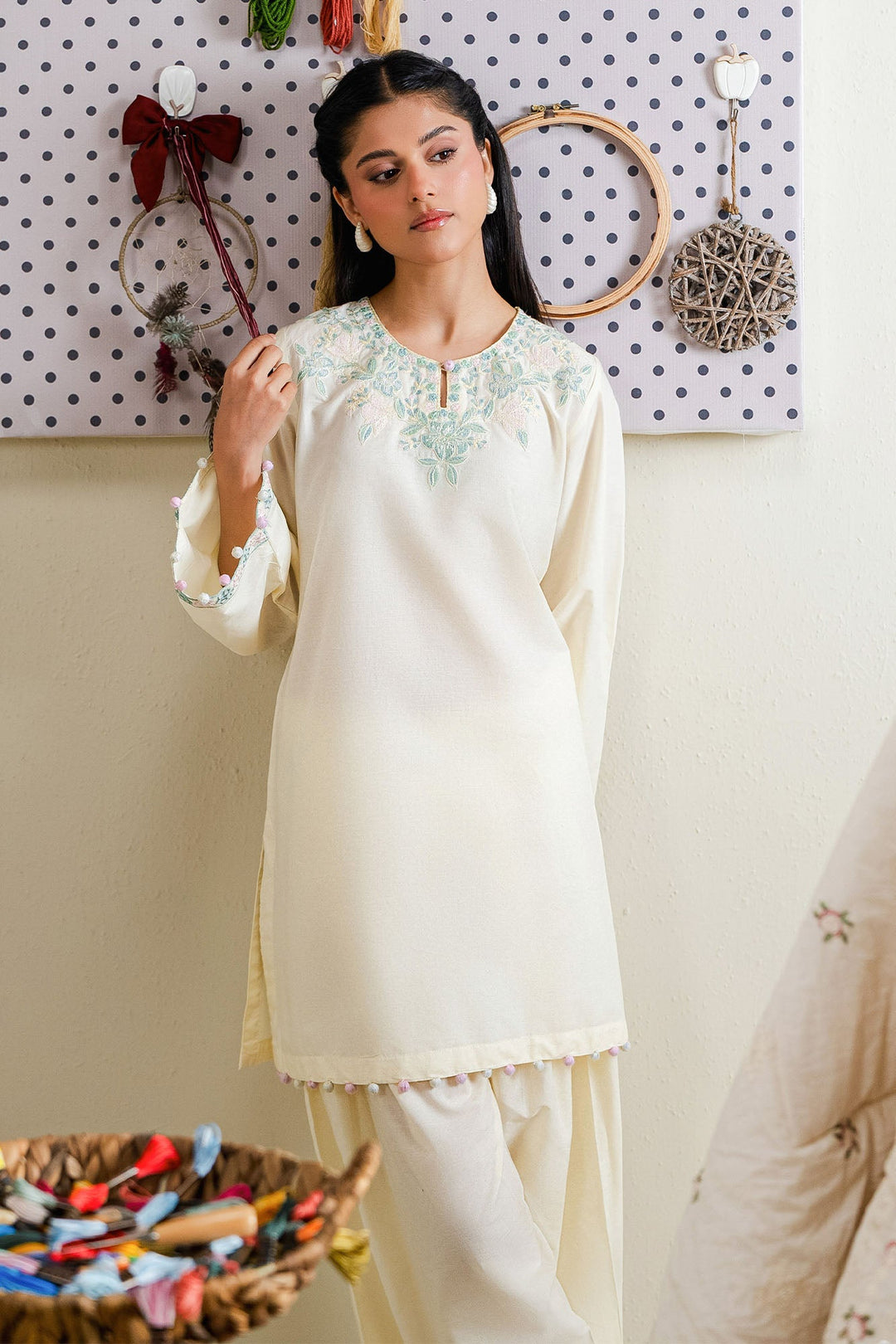 Cross Stitch - White Dove Cotton Suit For Women - White - 2 Piece