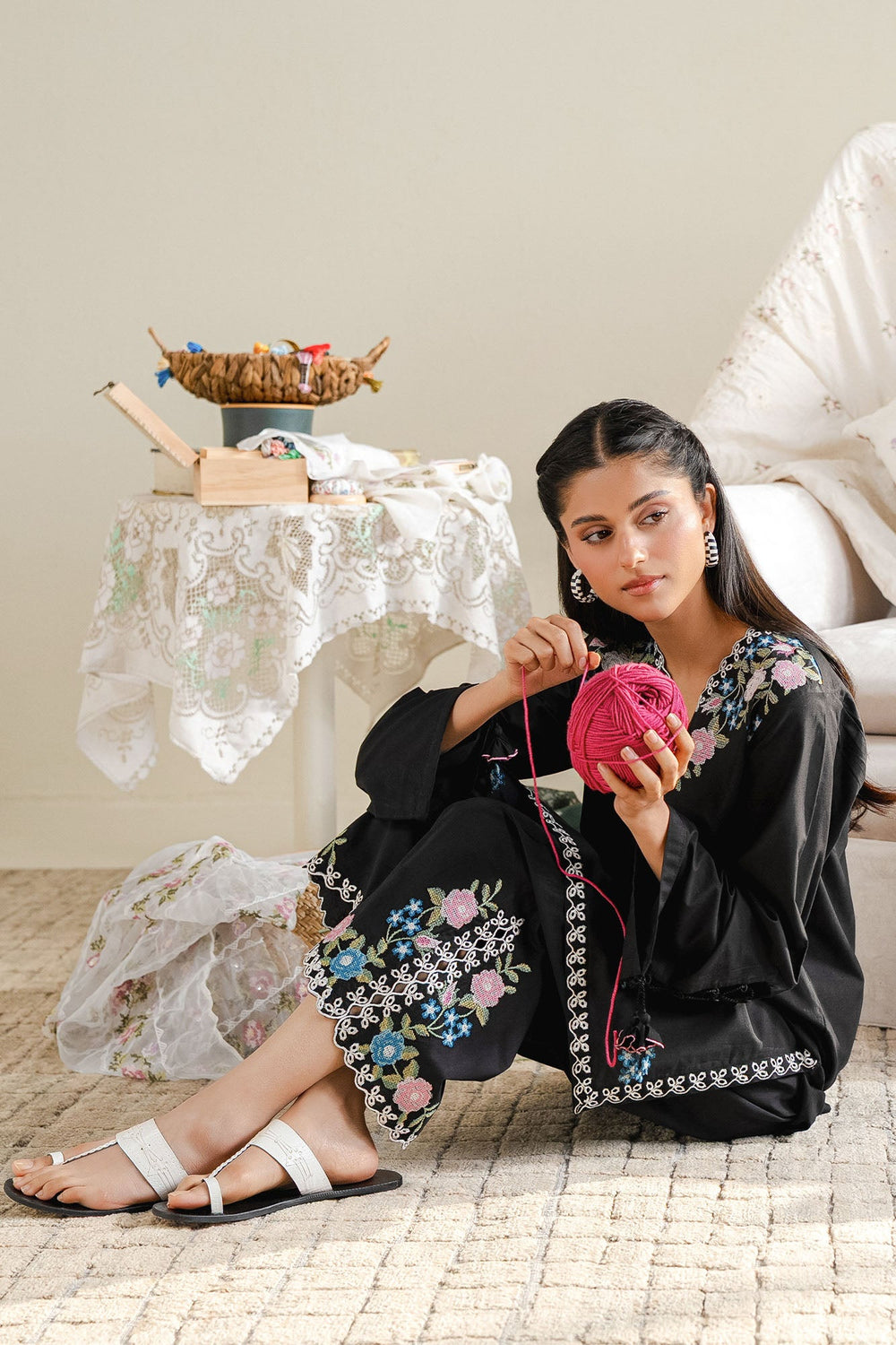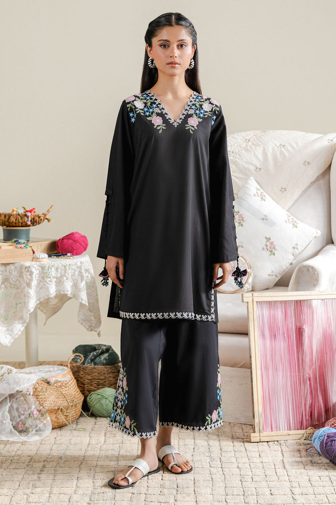 Cross Stitch - Vived Noir Cambric Suit For Women - Black - 2 Piece