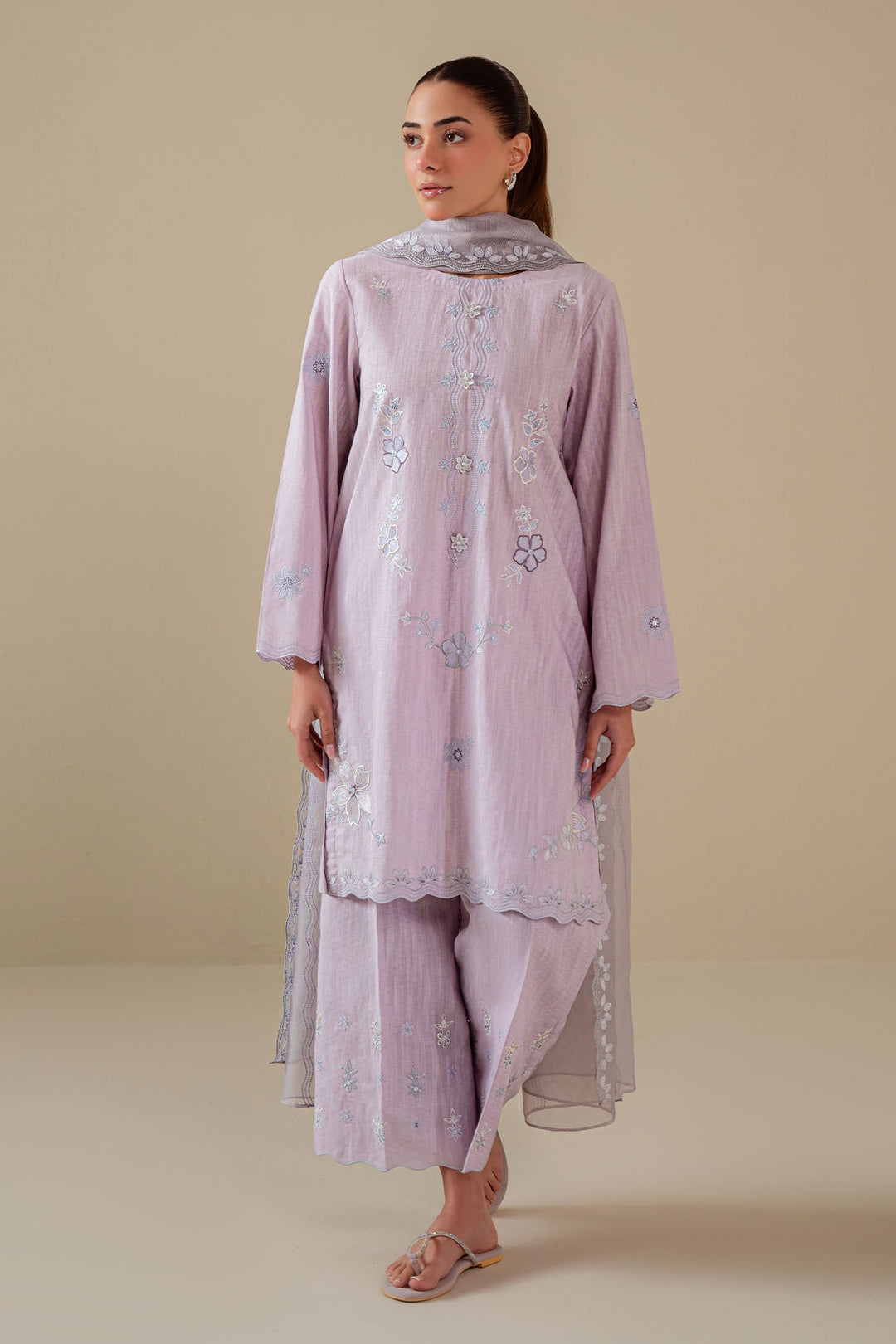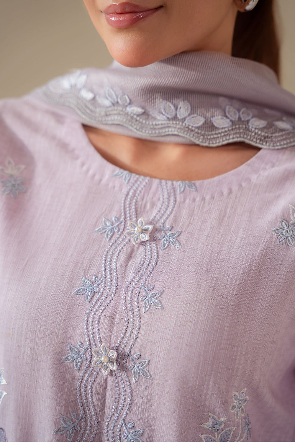 Cross Stitch - Lilac Blush Cotton Suit For Women - Purple - 2 Piece
