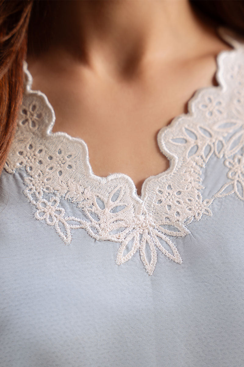 Cross Stitch - Frost Blue Cotton Suit For Women - Blue - 2 Piece