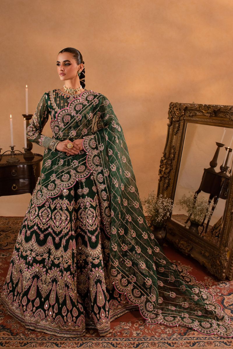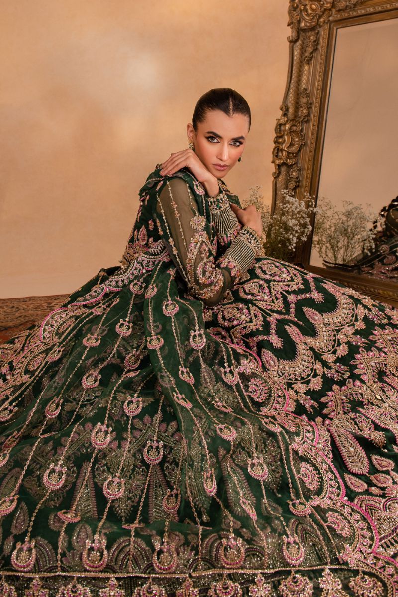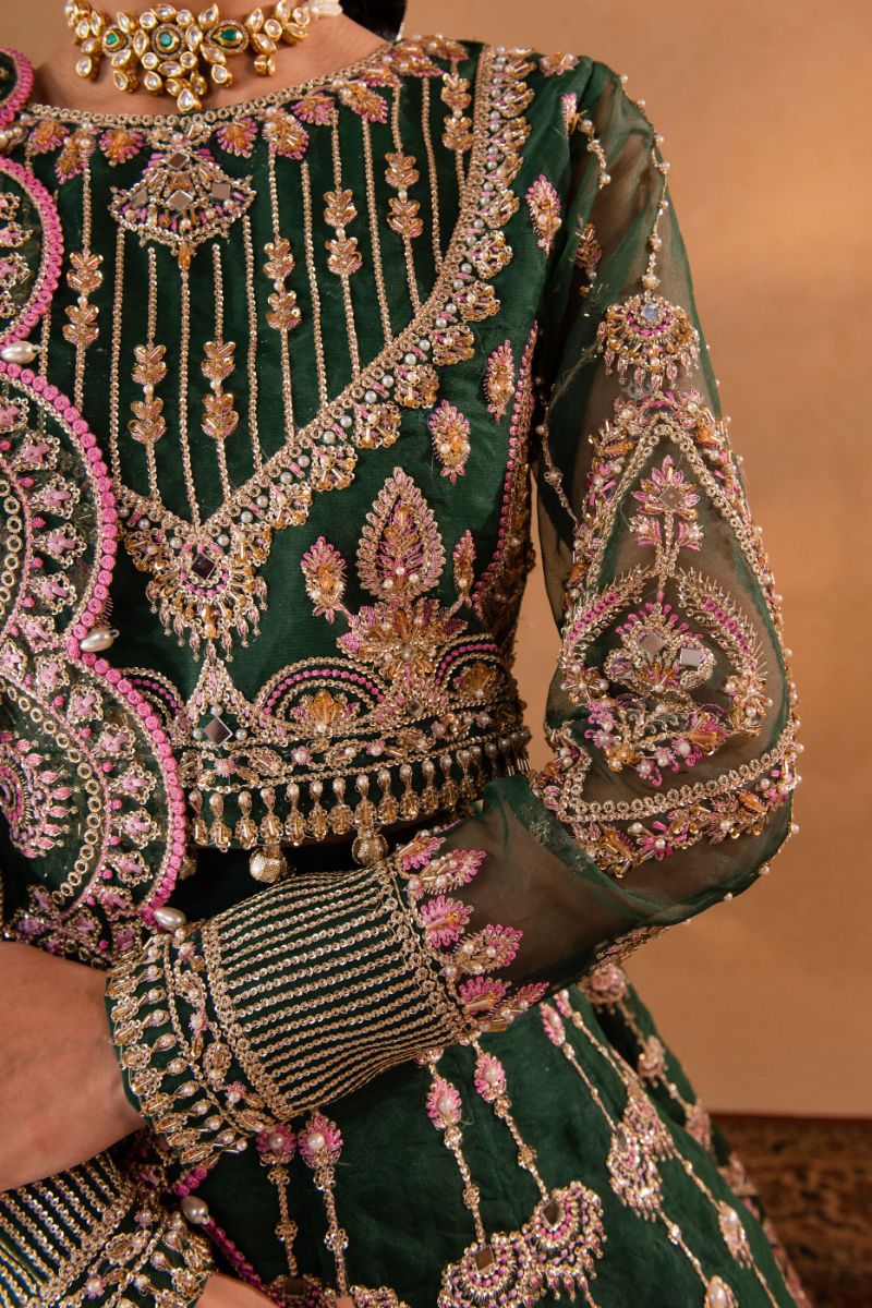 Maria Osama Khan - Pareesa - Lehnga - Green Organza & Raw Silk - 3 Piece