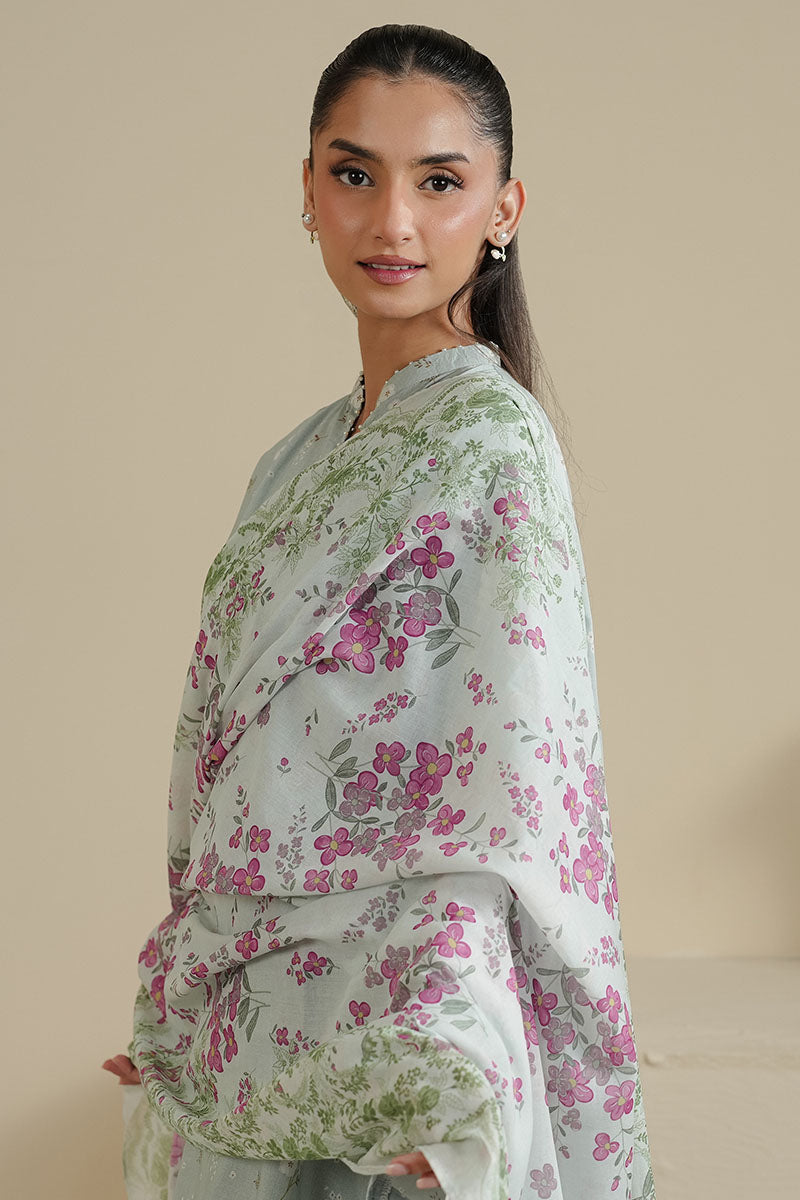 UNSTITCH 3PC: LAWN DIGITAL PRINTED SHIRT,CAMBRIC DYED TROUSER AND LAWN DIGITAL PRINTED DUPATTA