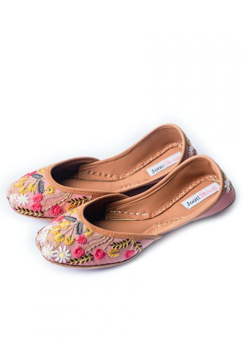 Say hello to Kiara. This khussa has a dusty pink base with thread-embroidered floral ornaments. With its mellow vibe, its makes Kiara an ideal pair to complement outfits of all colours. Maintaining the exclusivity, each pair is unique and one of a kind. With skilled craftsmen behind each pair’s fabrication process, from shoe making, design sketching to hand-work, JootiShooti promises to be a treat for your feet. Details: Upper - Silk Back - Silk Sole - Leather Padding - Double Cushioning for comfort Make: Handcrafted in Pakistan Care: Super easy to clean! Wipe with a slightly damp cloth to clean off any dust.