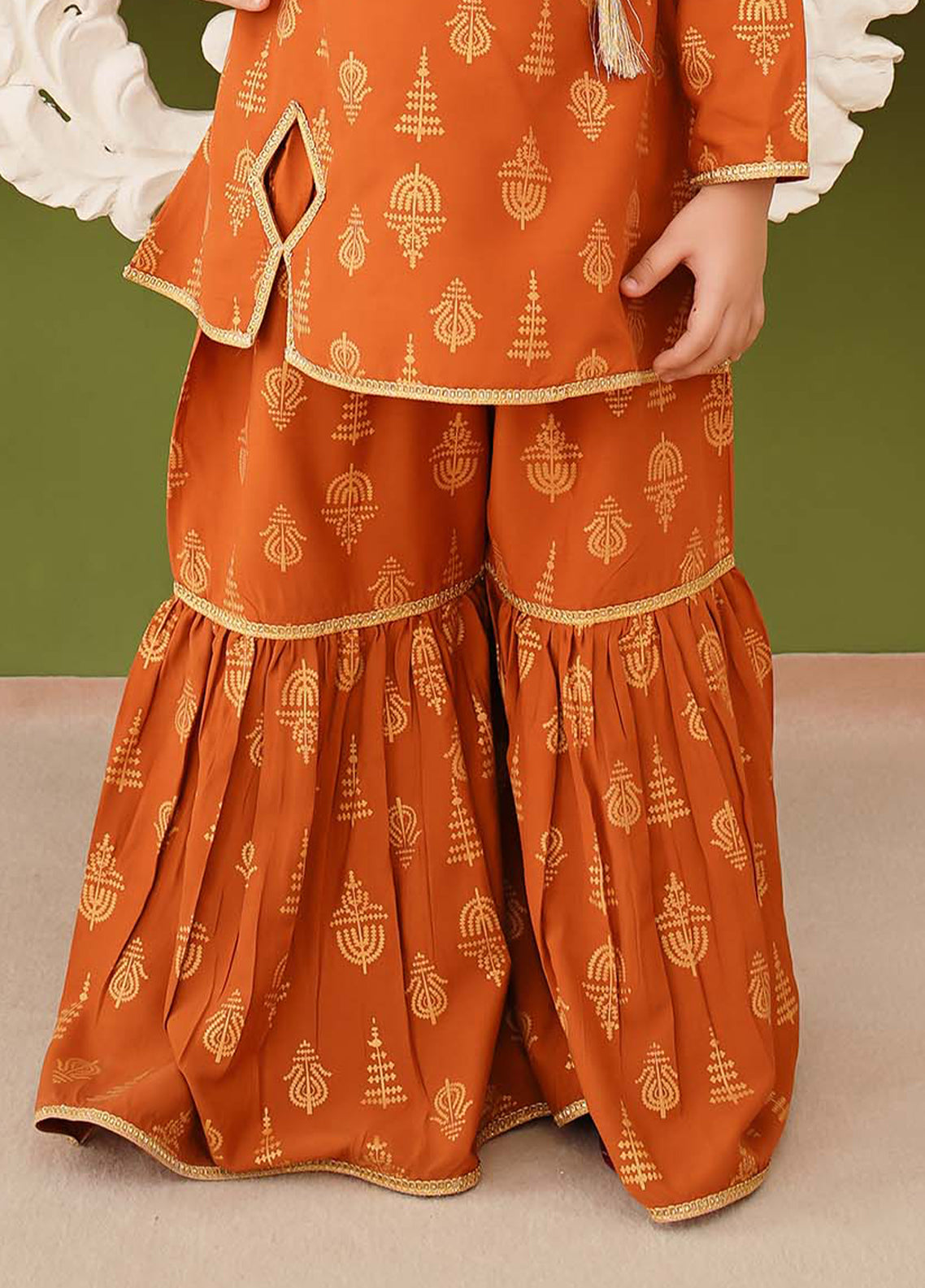 Modest - Printed Mustard Linen Gharara - Girls 3 Piece Suit
