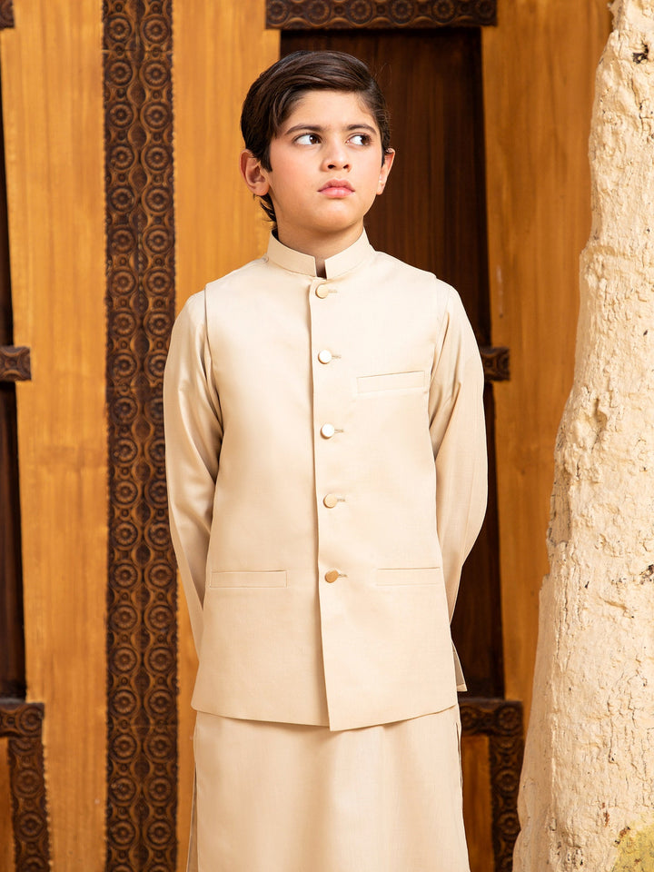 Shahjahan - Ivory Skin Kurta Trouser with Waistcoat - 3 Piece