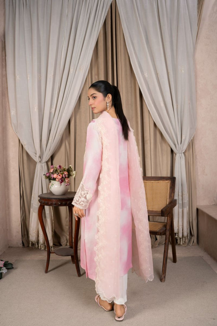 Reema Ahsan - Minna - Pk, Raw silk & Organza - Pink & white - 3 Piece