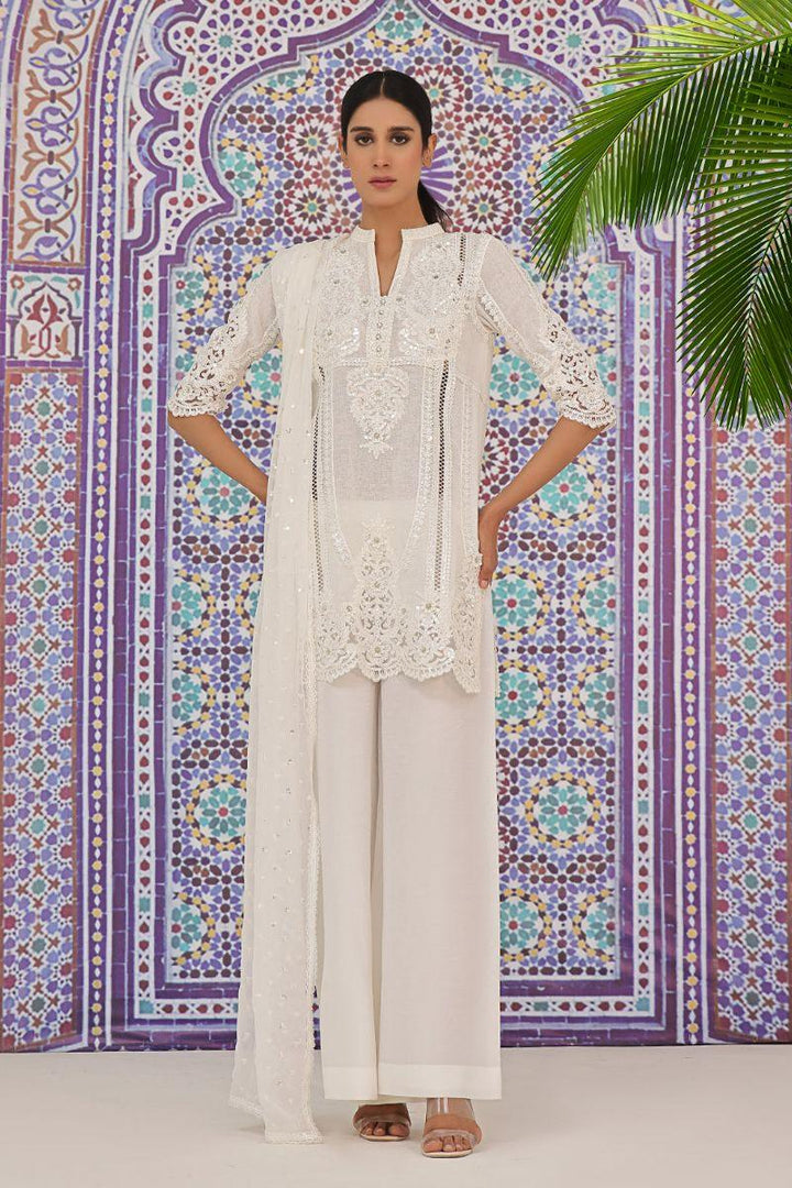 Rizwan Beyg - Selini Short Shirt - Irish Linen - White - 2 Piece