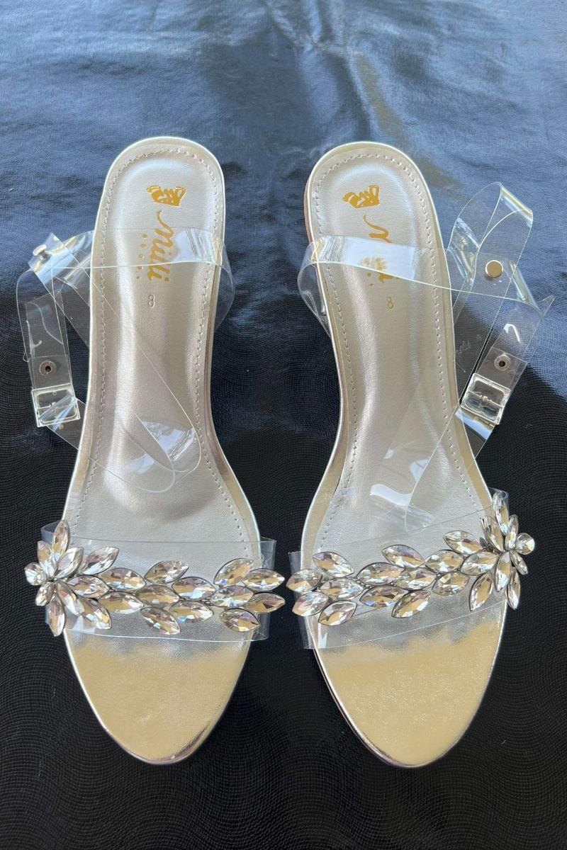MILLI SHOES - Silver Double-Strap Embellished Sandals - Heels - Golden - 1620