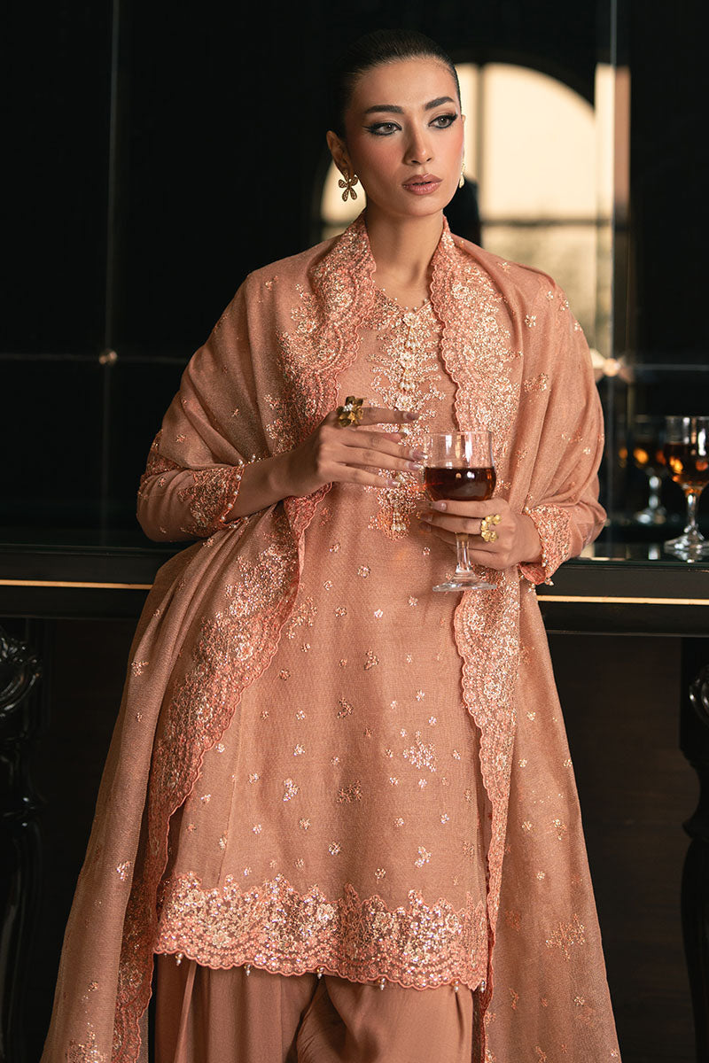 Maria Osama Khan - Zarmin Brown Organza / Raw Silk Suit For Women - 4 Piece