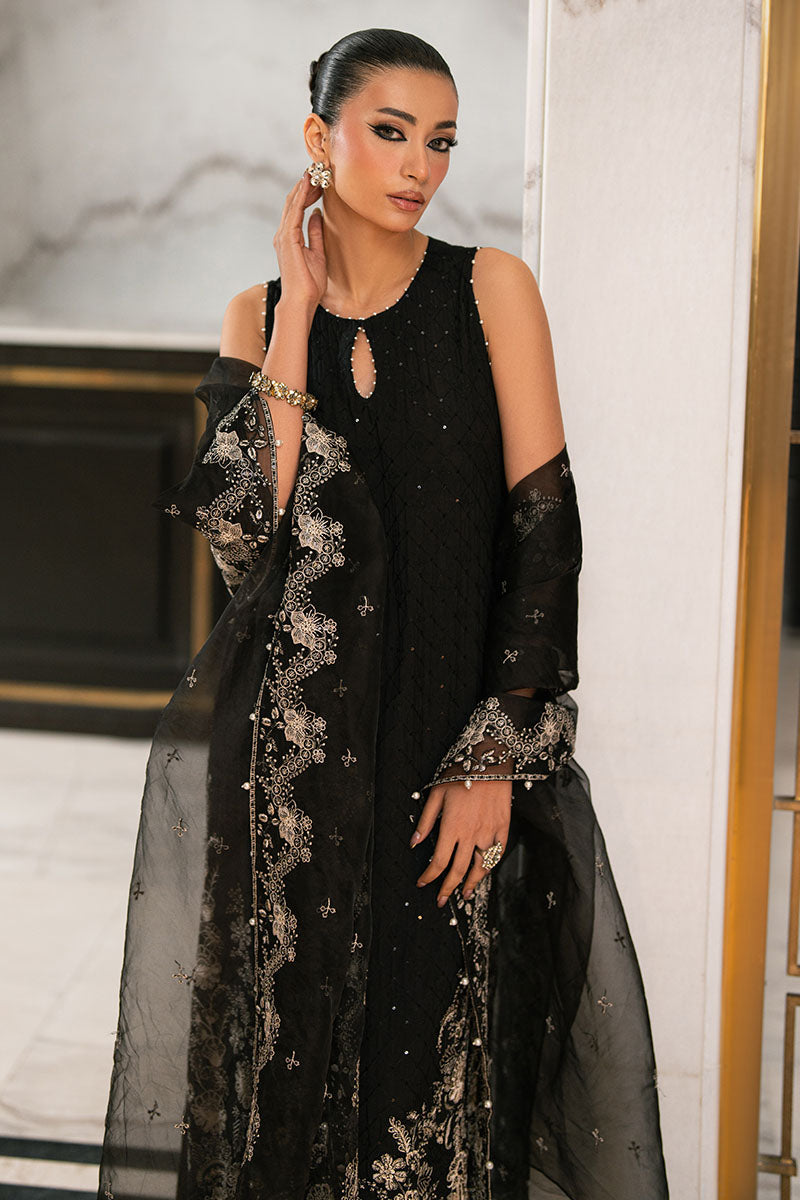 Maria Osama Khan - Mehtab Black Organza / Raw Silk Suit For Women - 3 Piece