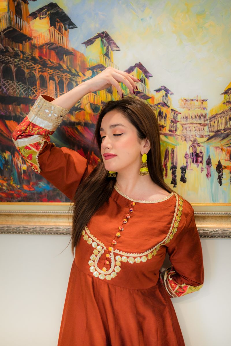 Zahra Ahmed - ST-122 - Rust - Indian Raw Silk - 2 Piece