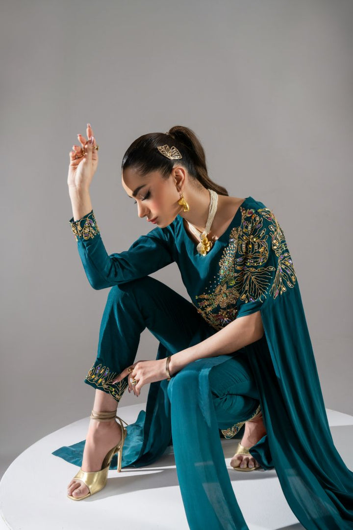 Maria Osama Khan - Elysian - Teal green - Grip & Korean - 2 Piece