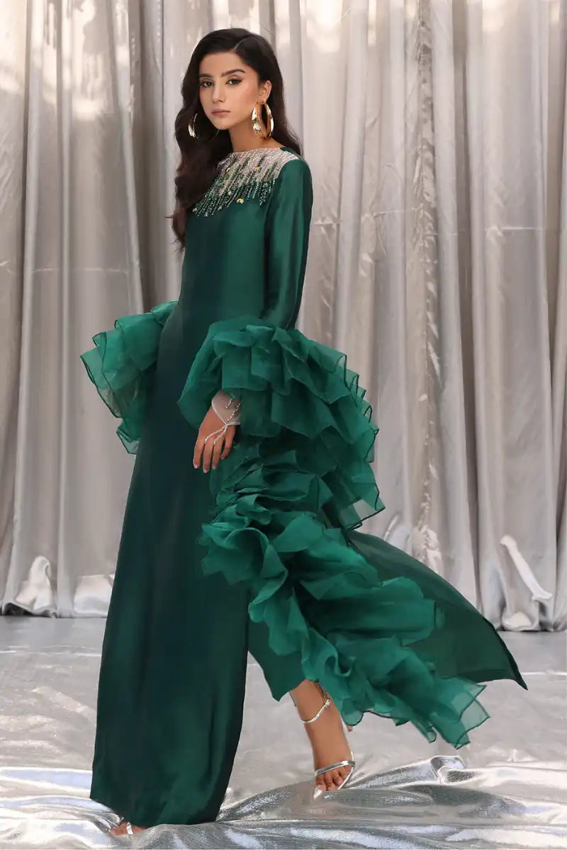 Musferah Saad - Emerald Chic - Emerald Green - Tissue Silk & Organza - 3 Piece
