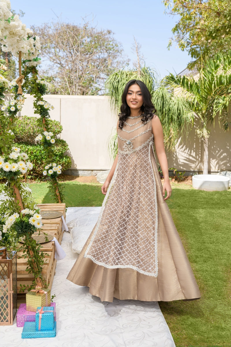 Alishba Kashif - AURA - taupe - Net and Maisoori - 3 Piece