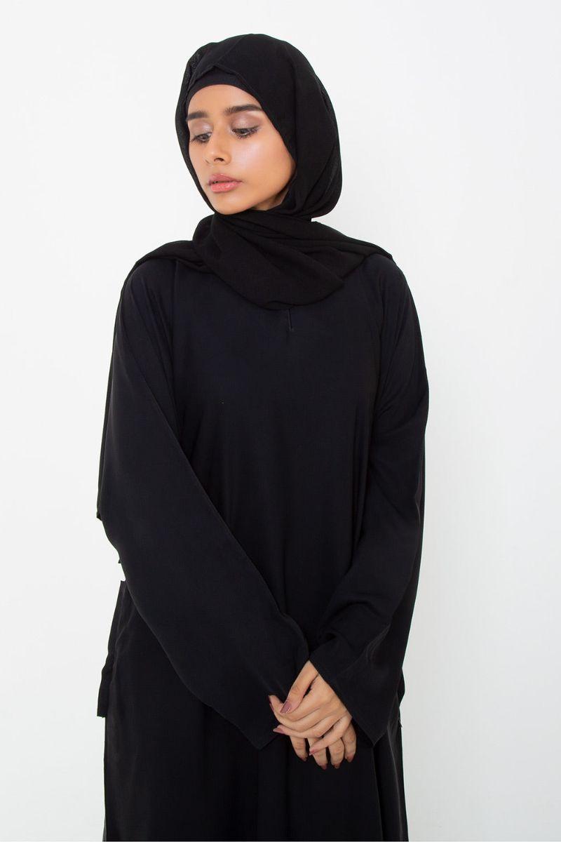 Abaya.pk - Black Basic Front-Closed Abaya & Hijab - Chiffon & Nada Fabric