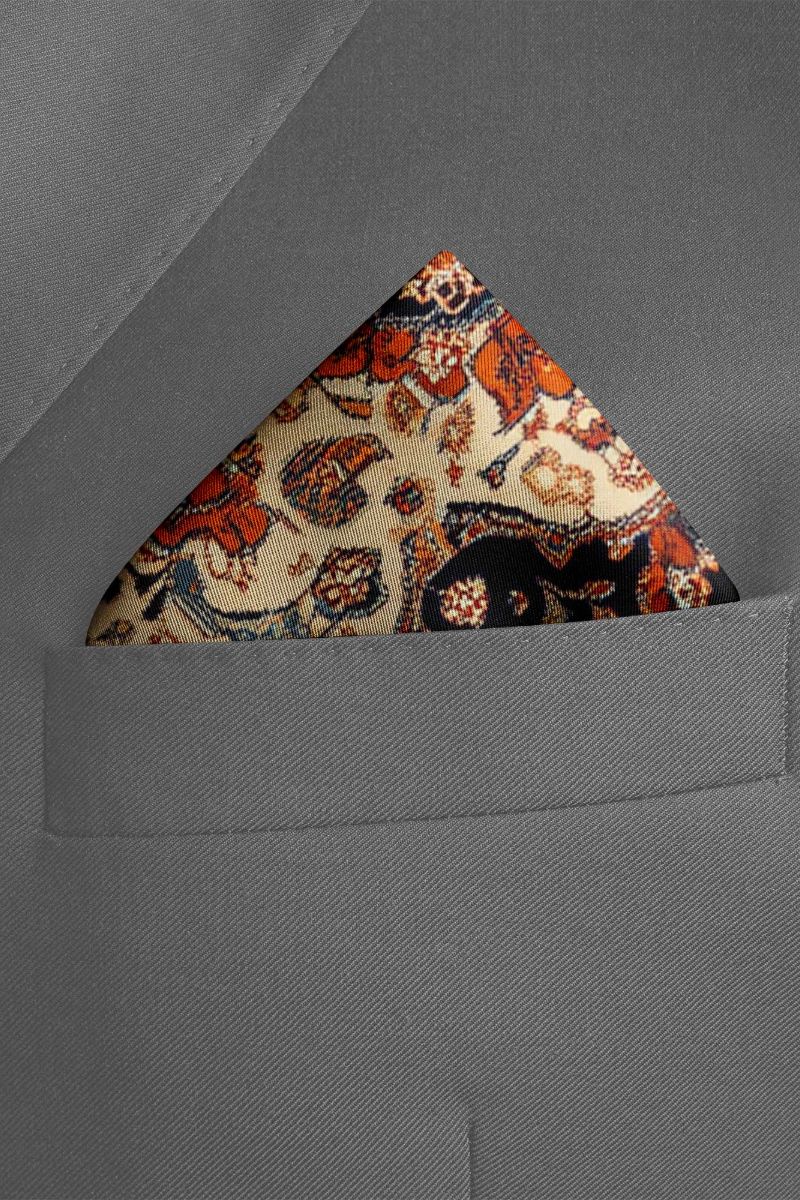 Black Wolf - VINTAGE DAMASK SILK POCKET SQUARE - OFF WHITE - SILK - 1 Piece